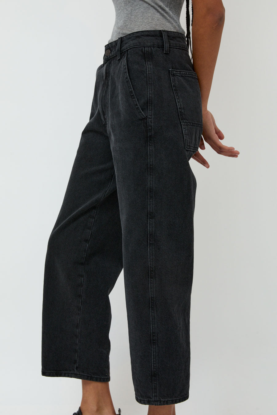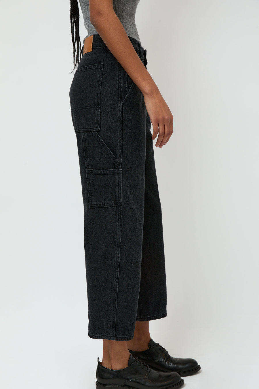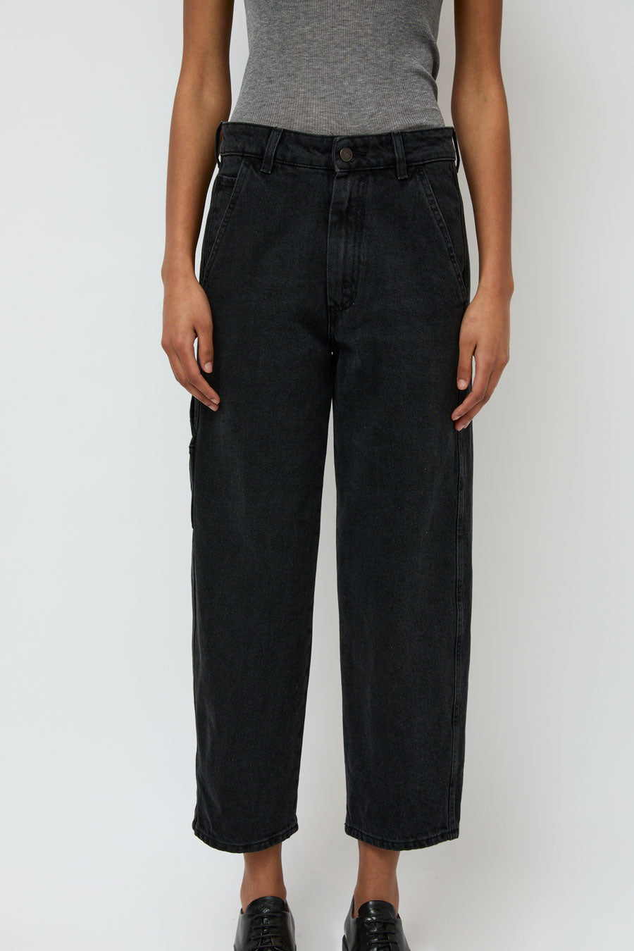 Workwear-inspired painter jean in a faded black wash. Classic 5 pocket details and belt loops. Zip fly closure.