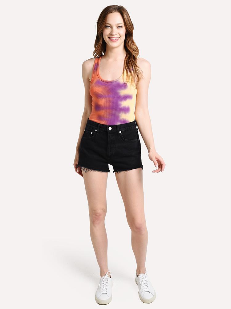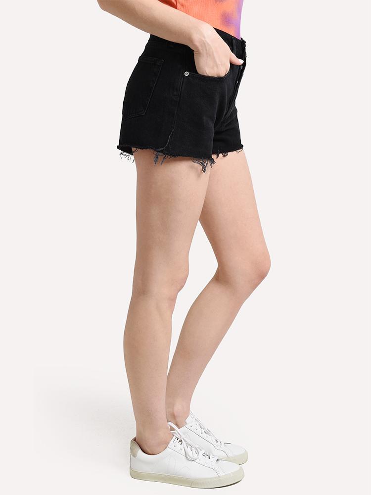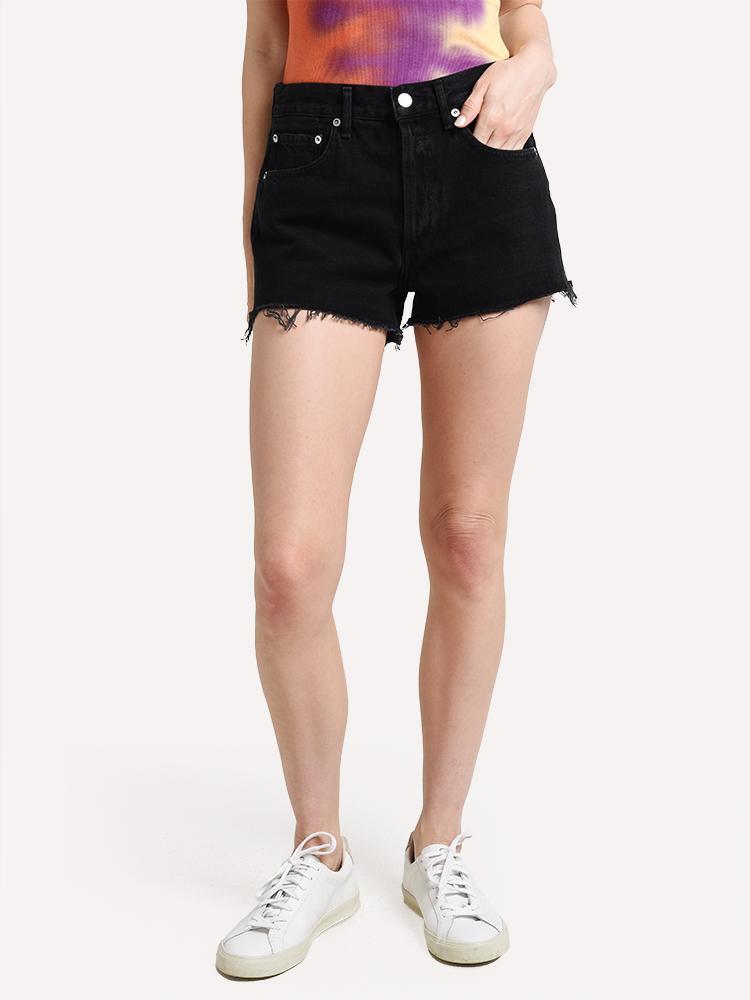 The Agolde Parker Vintage Cut Off Short features a black wash with distressed details for any occasion.