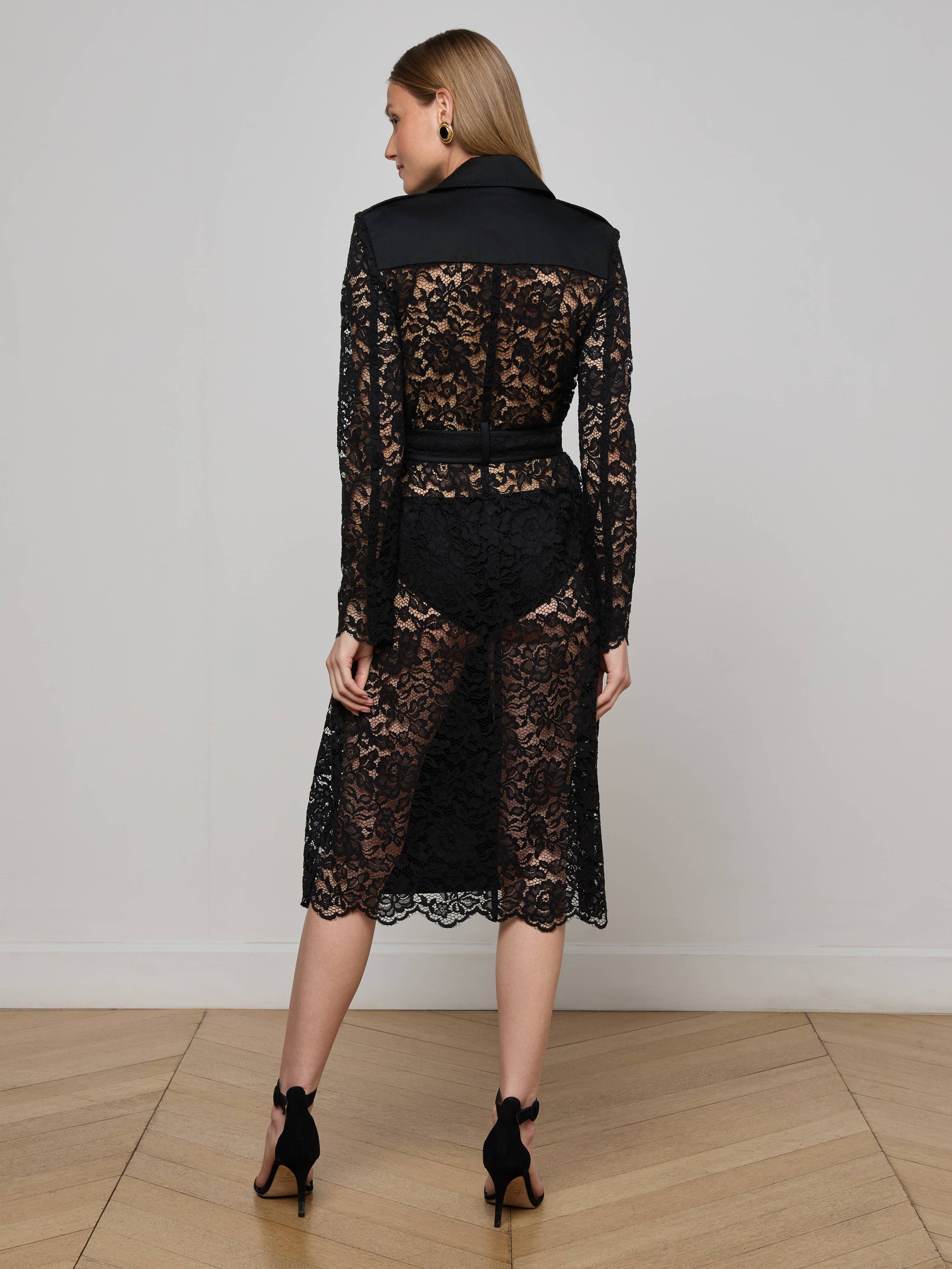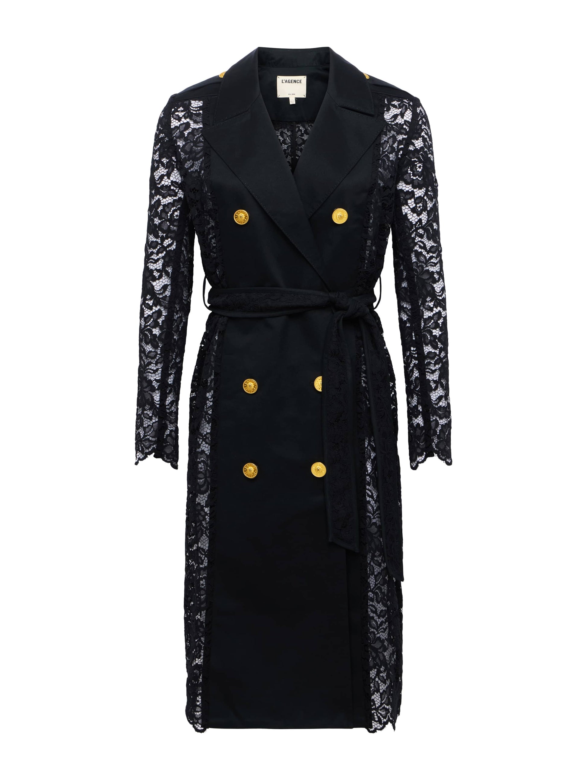 The Amata debuted at the Fall ‘25 NYFW presentation. This sheer lace trench coat puts a feminine spin on a classic, blending timeless tailoring with romantic details. The ultimate statement layer.