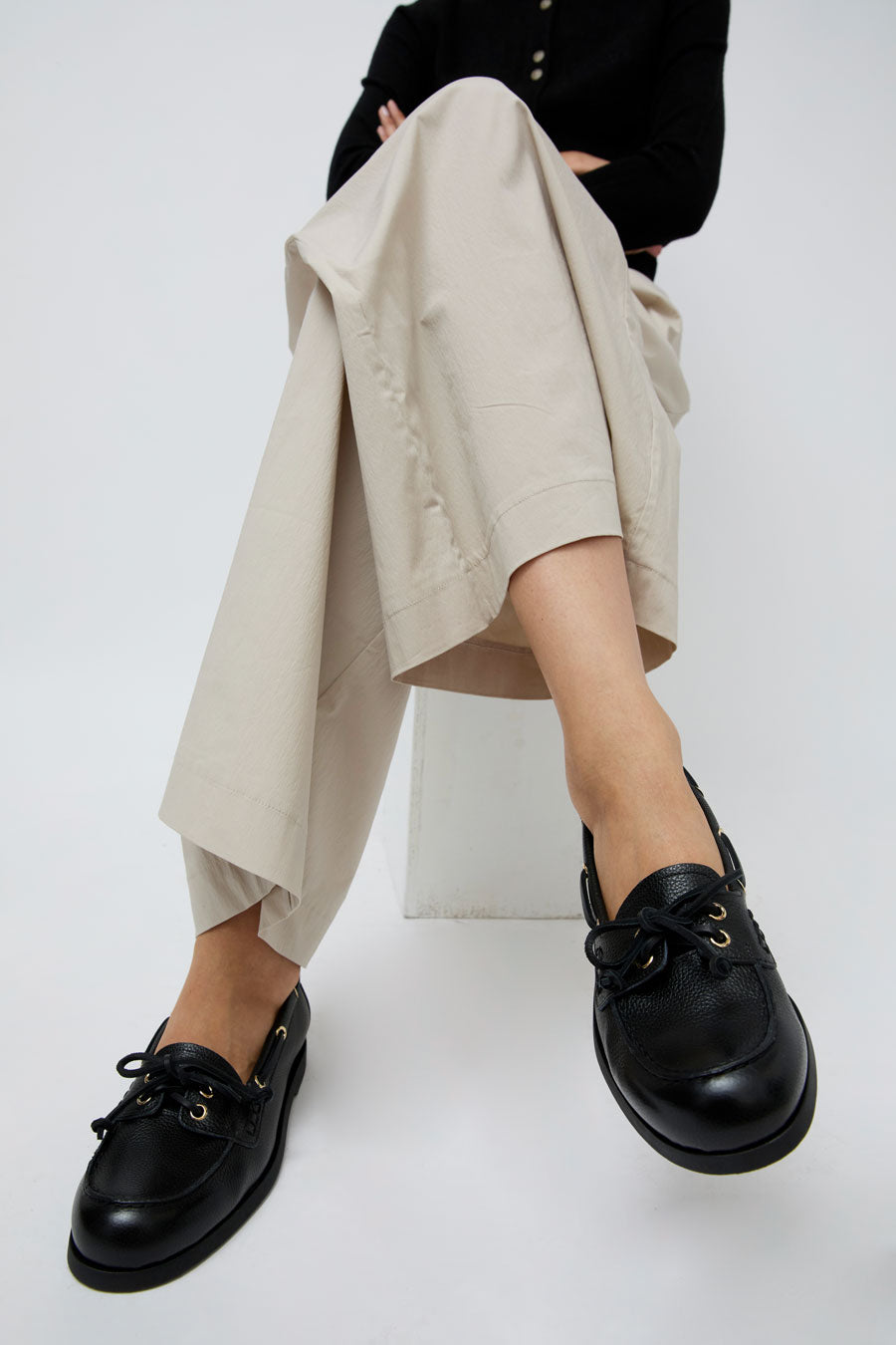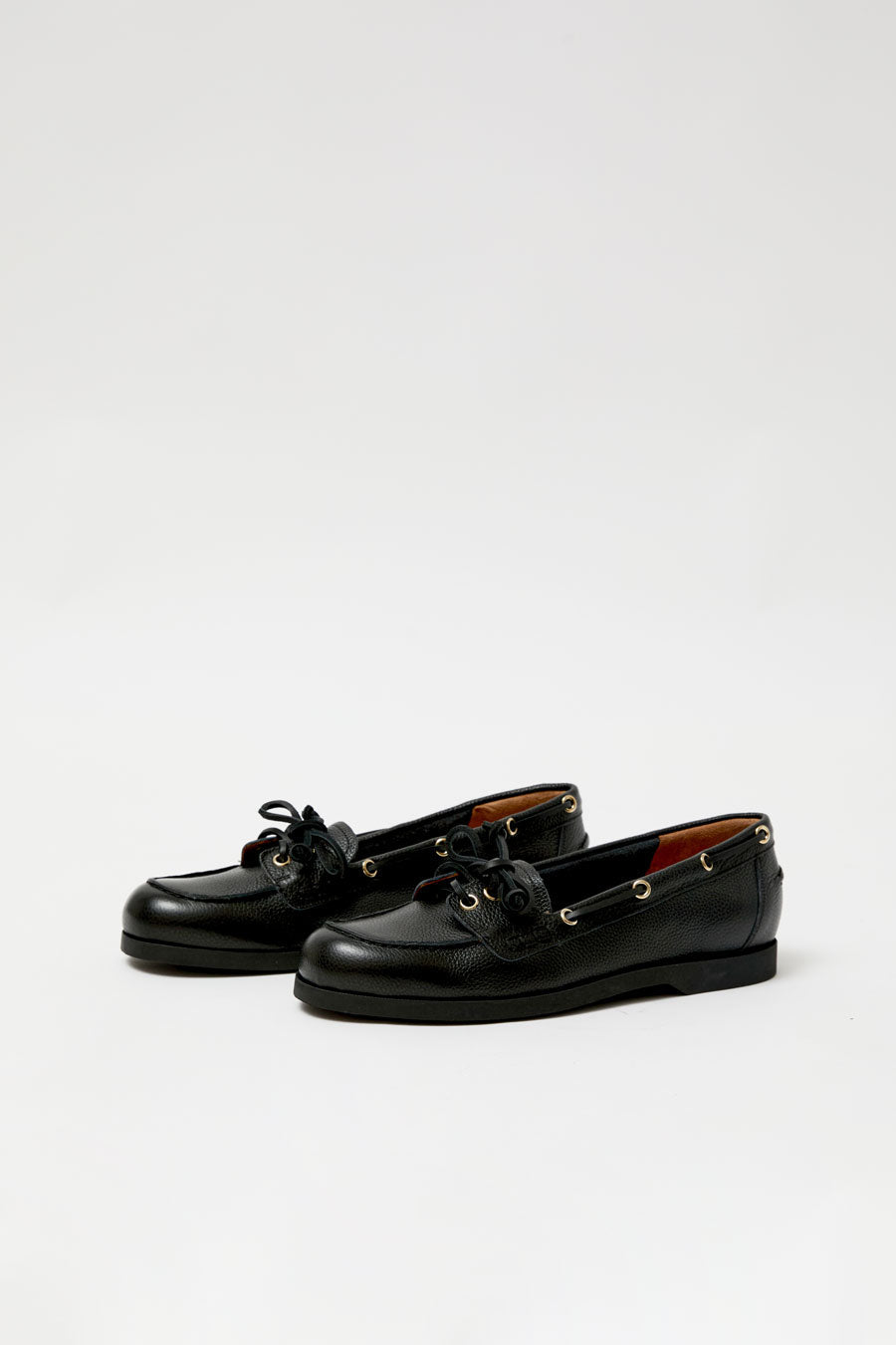 ATP Atelier Nesso Boat Shoe in Black Grained Calf