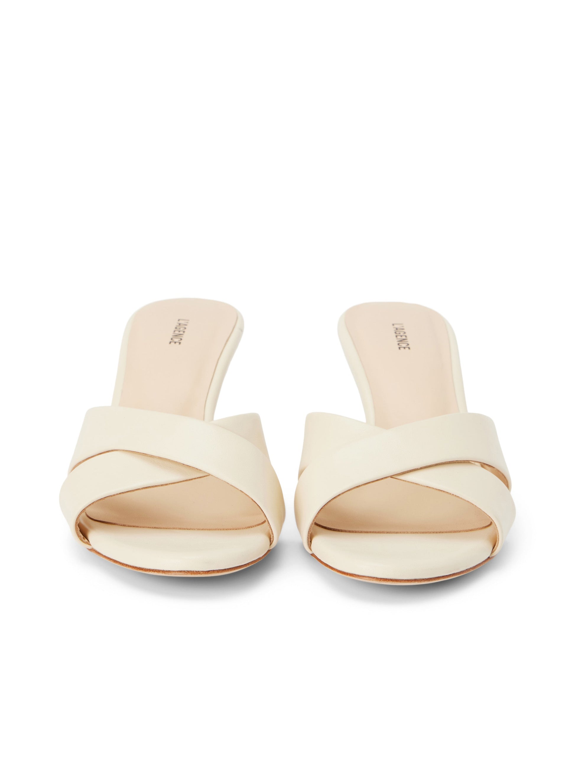 She's ultra-pretty and effortless to wear. Our Aveline rounded-toe sandal features a backless design that slips on and off in seconds. The supple off white leather crisscross vamp securely hugs the foot and the kitten heel offer sophisticated comfort. Dress up your everyday denim look or pair with your prettiest dress for a night out.