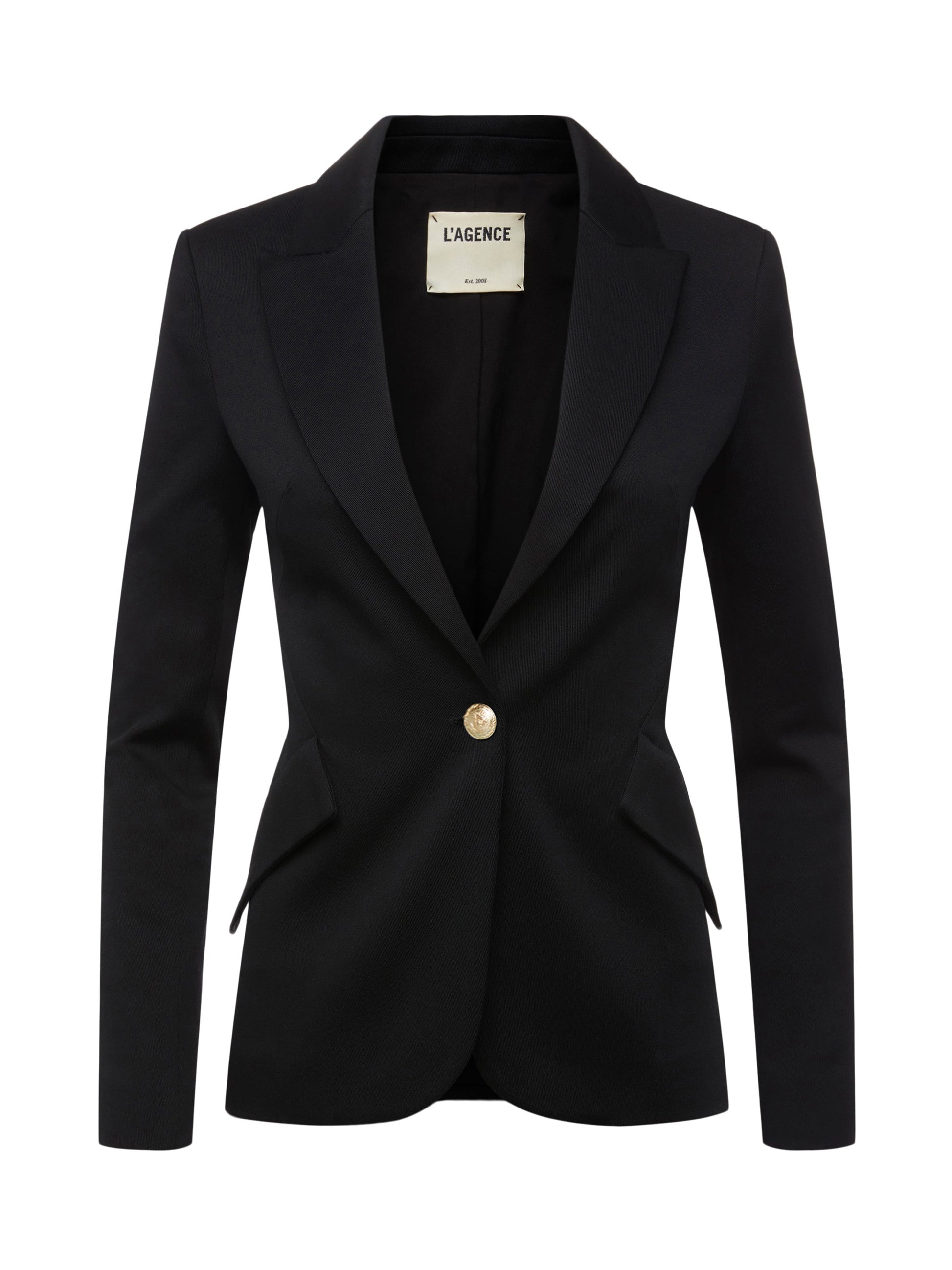 The ultimate single-breasted blazer, now in classic black and updated with gold accent buttons.