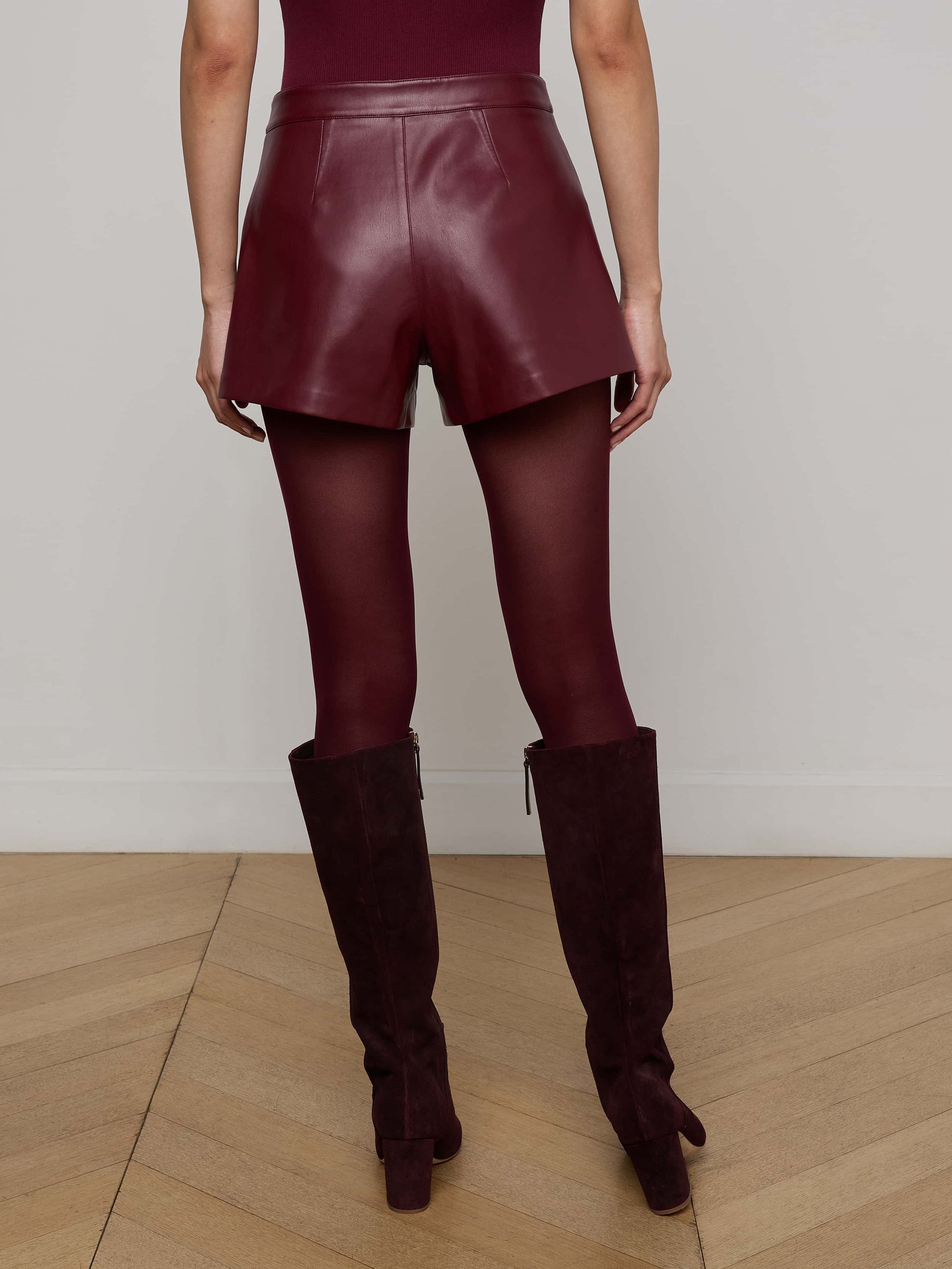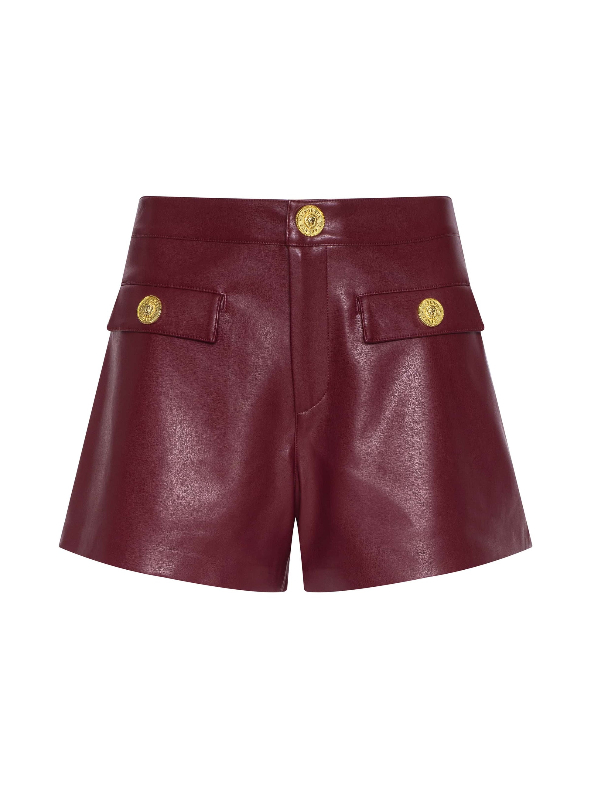 Polished details meet a supple vegan leather. Our Dionne short is a versatile bestseller, perfect for both work and play. Now in black cherry.