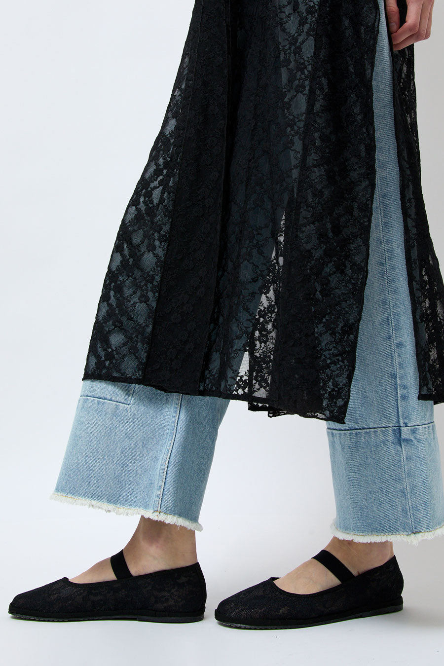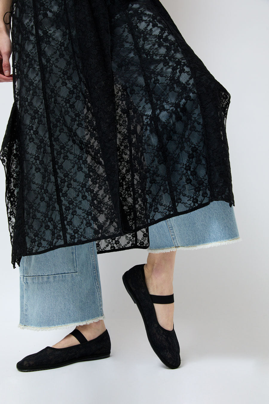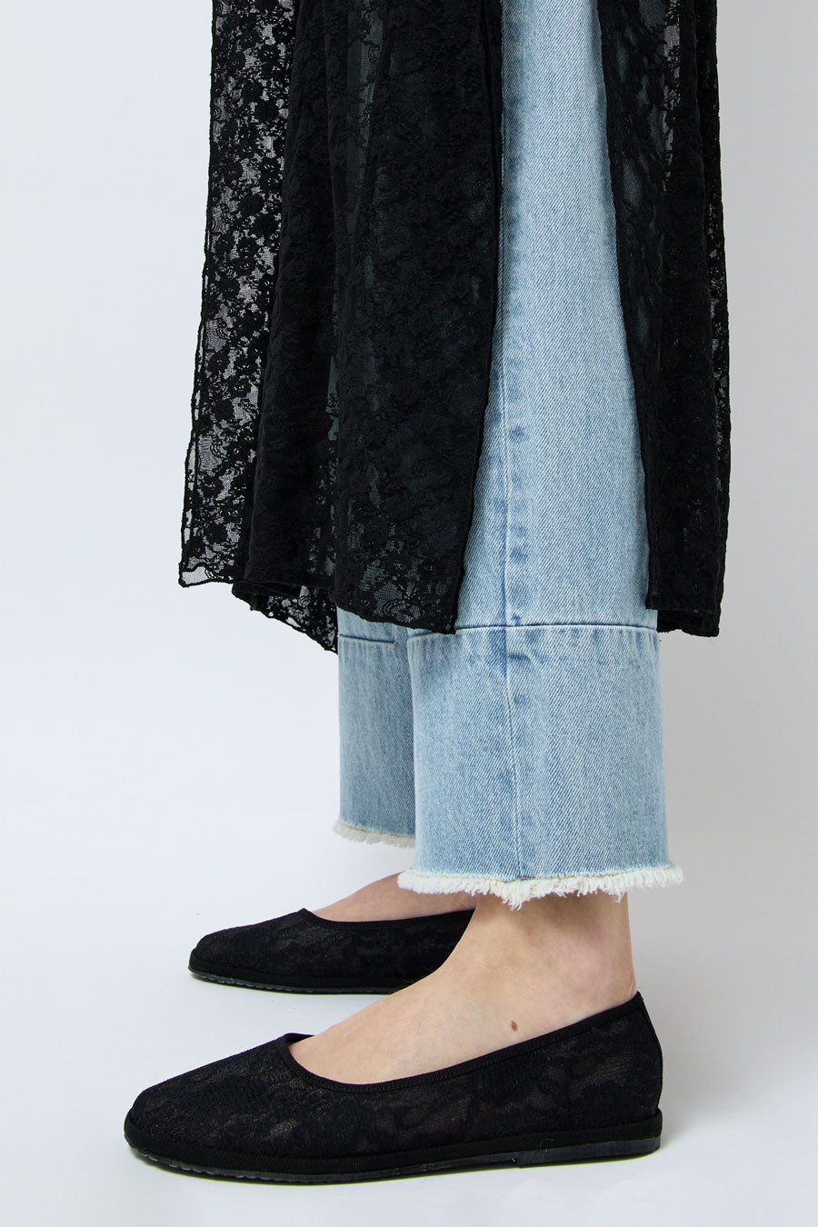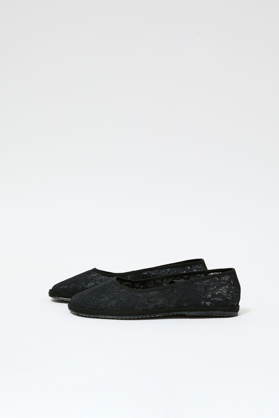 Slip on ballet flat with floral mesh upper and rubber sole. Rounded toe.