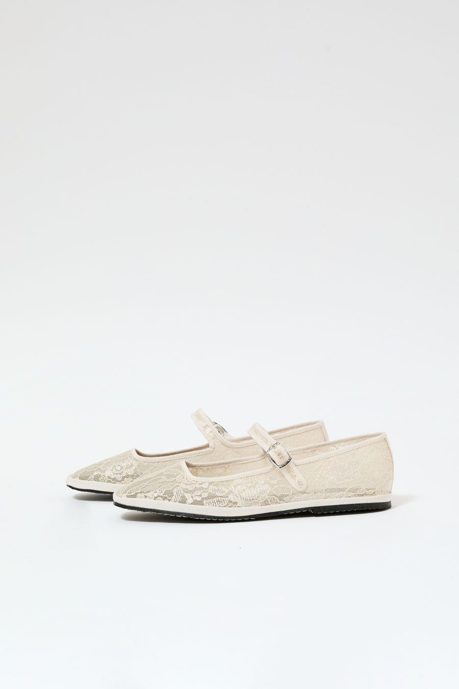Drogheria Crivellini Square Toe Mary Jane in Champagne Mesh Flower