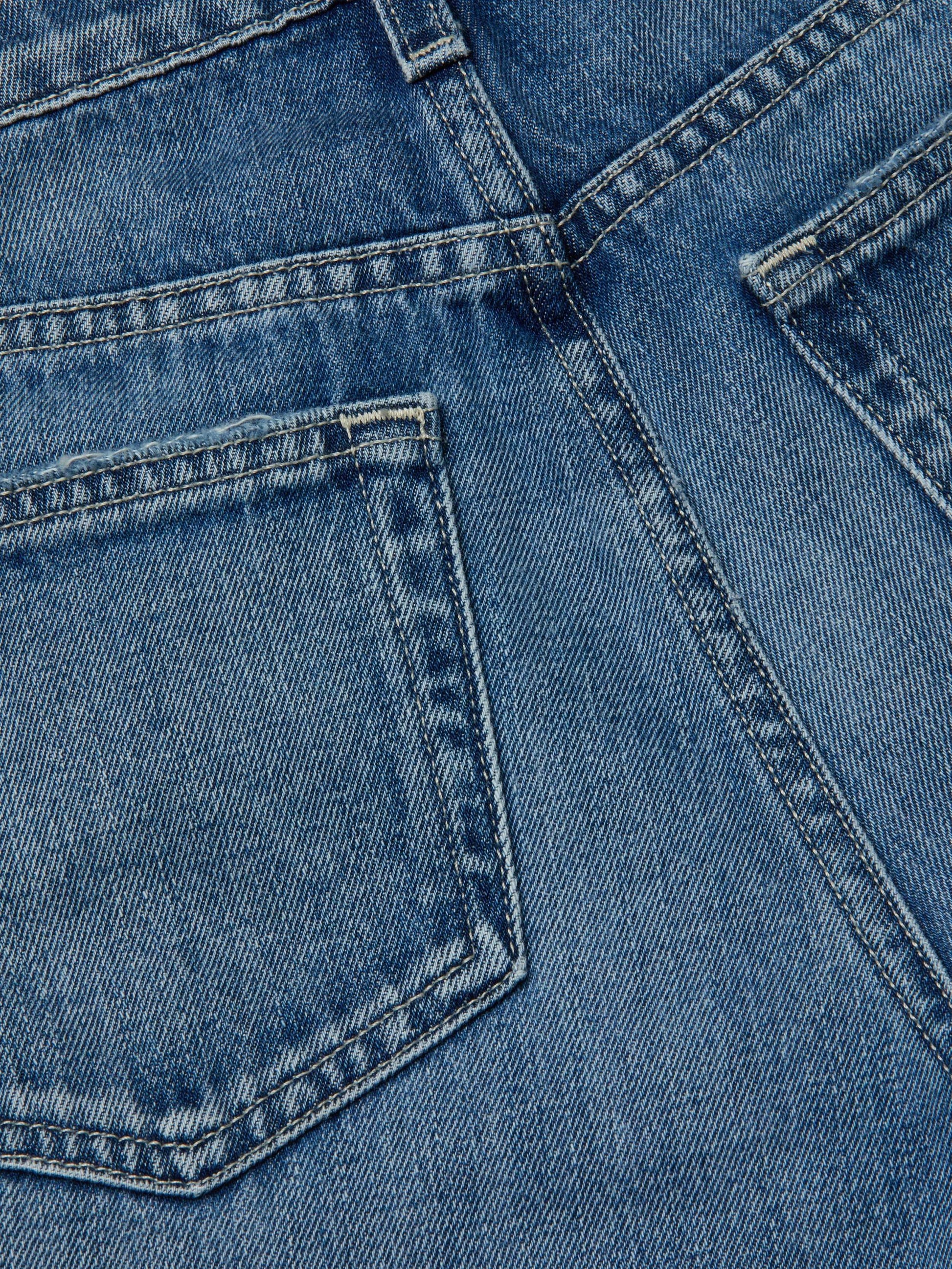 Your coolest Bermuda denim short is the low-rise Elise. This style sits at the hip and features a relaxed fit that hits just above the knee. Now in a medium wash.