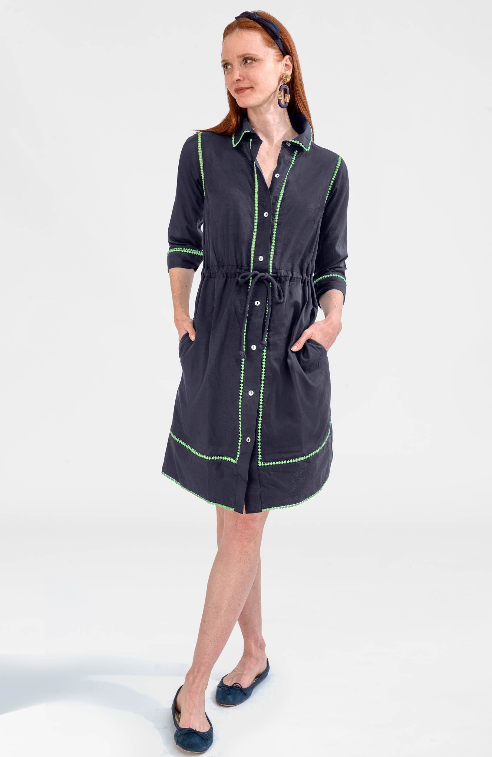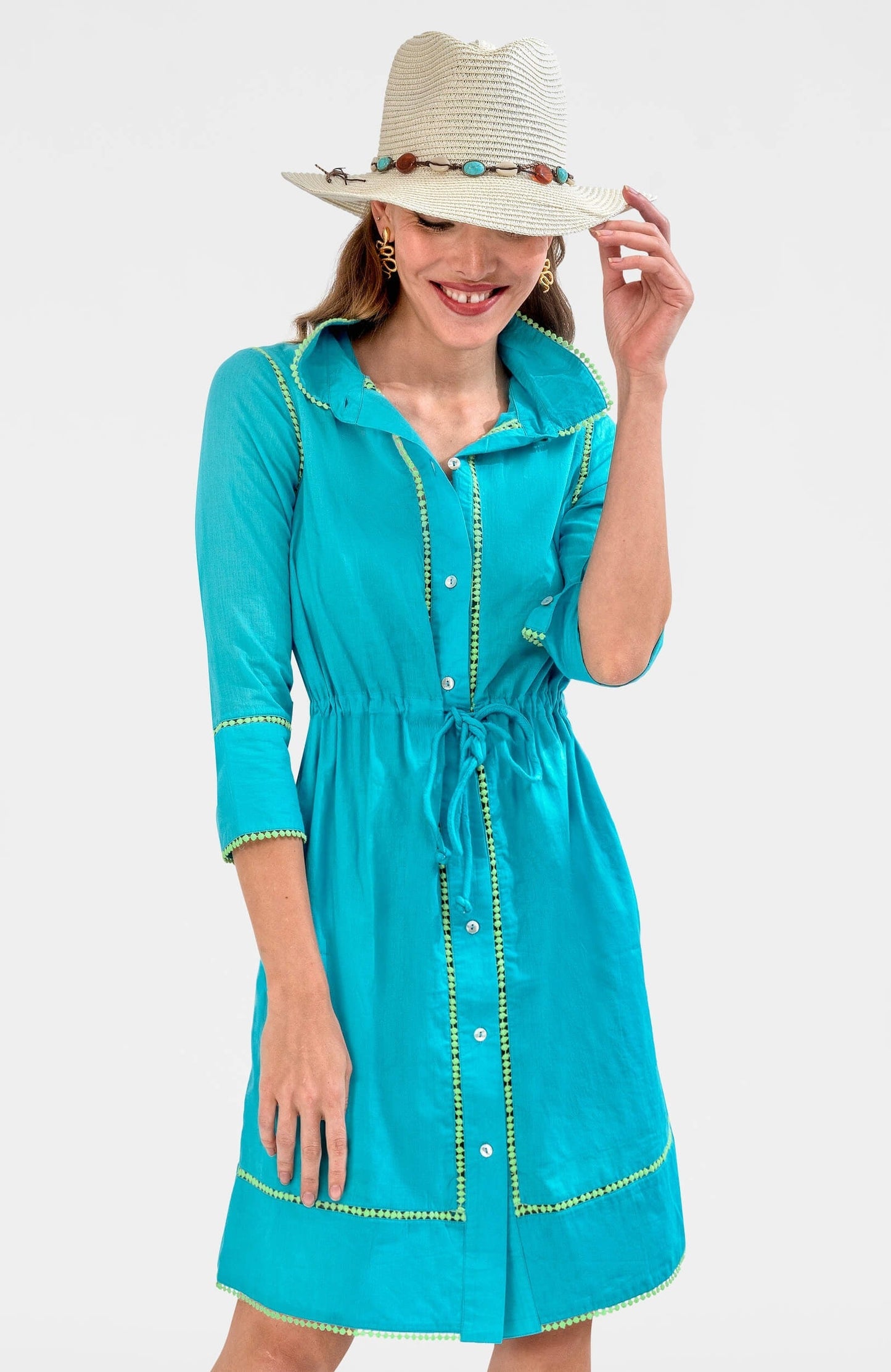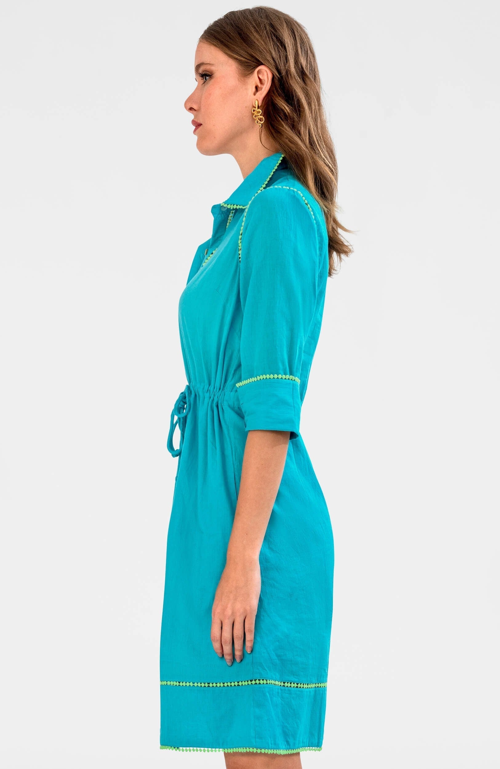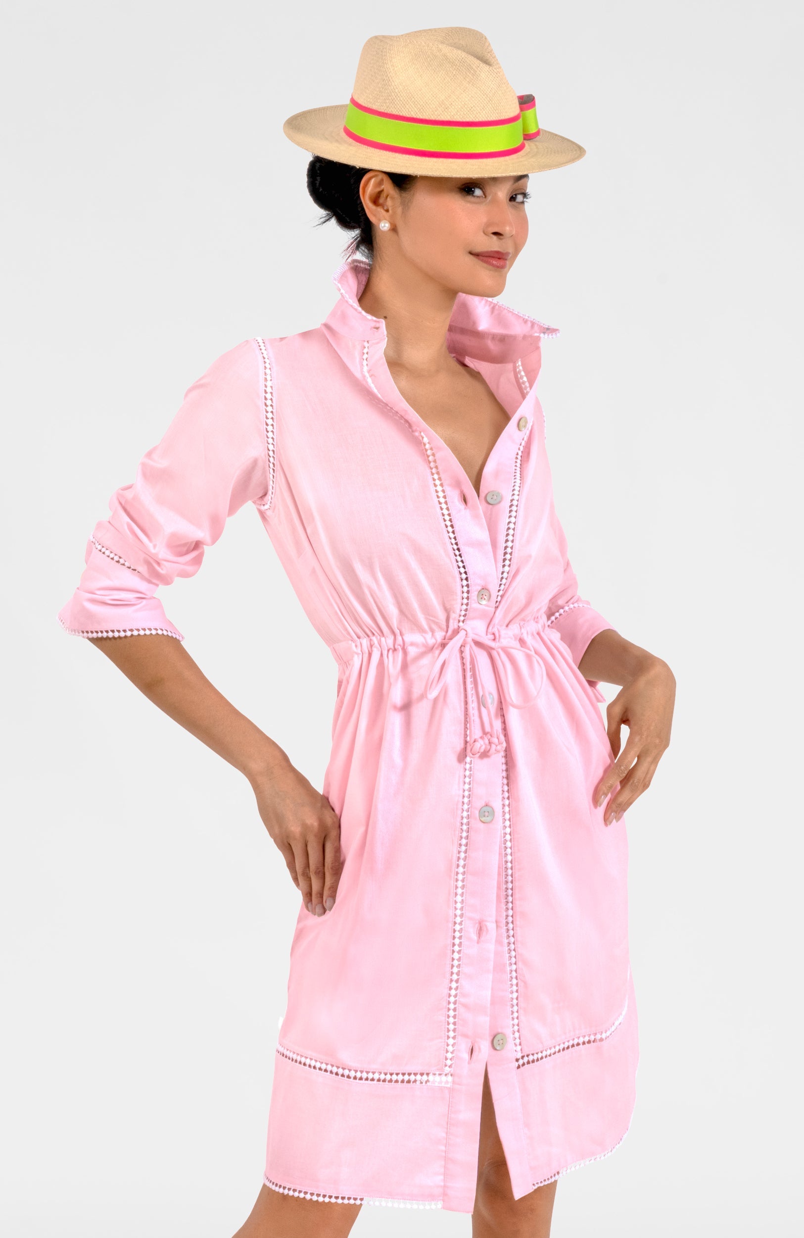 - Contrast Insert/Cotton Flat Circles/All Edges/Dress Body/Front Placket
