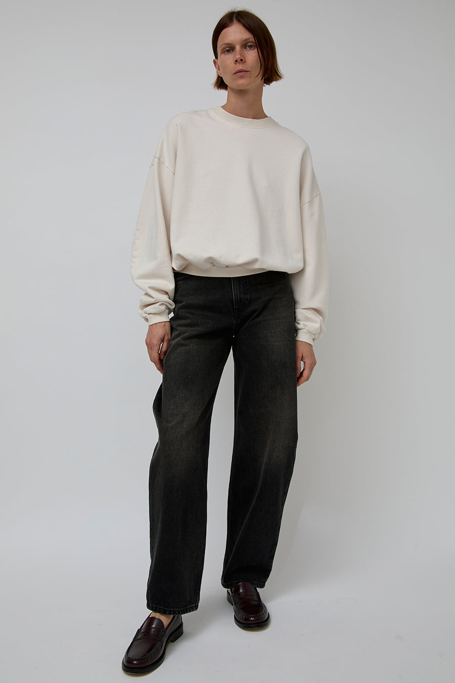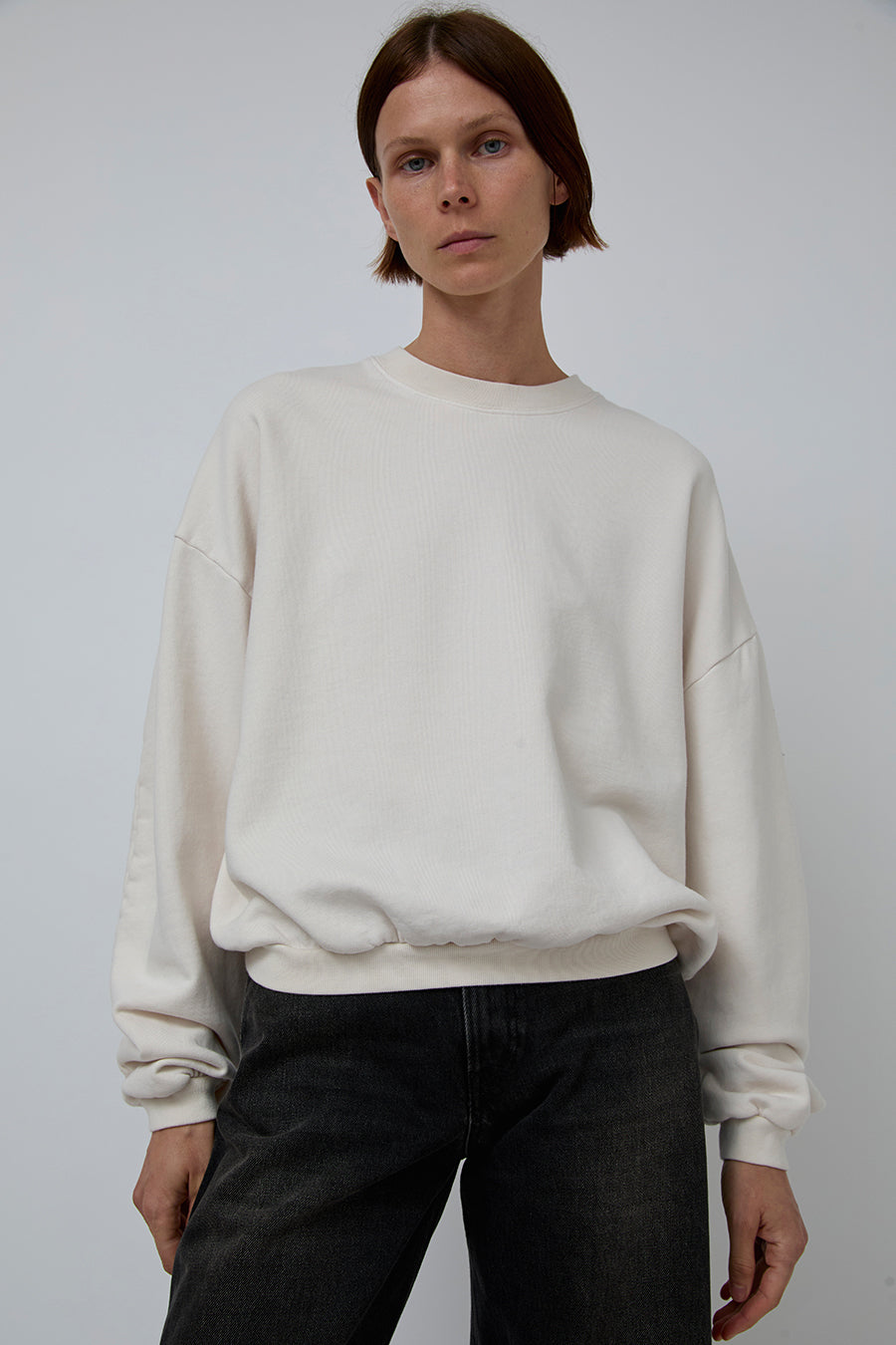 Classic oversized crewneck sweatshirt in 100% cotton. Long sleeve, cinched waist, and exaggerated dropped shoulder.