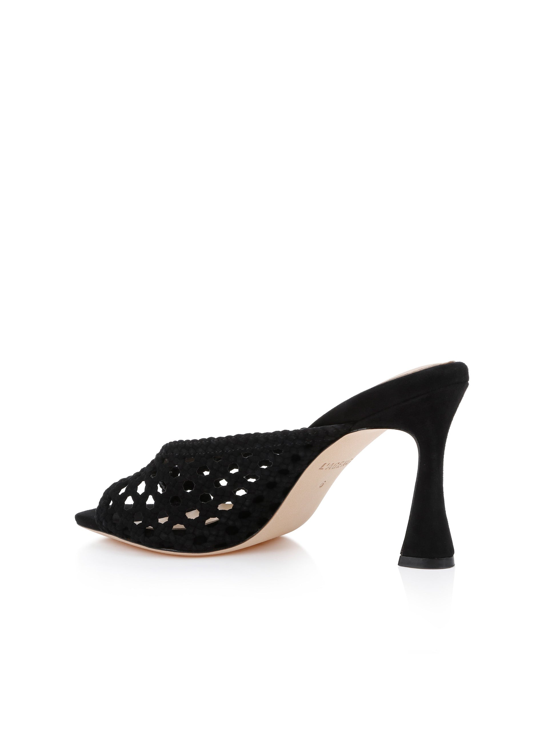 With a woven suede upper and sculptural flared heel, the Jacques is ready for your next night out. A V-cut vamp adds a flattering, elongating finish that elevates any look. In black suede.