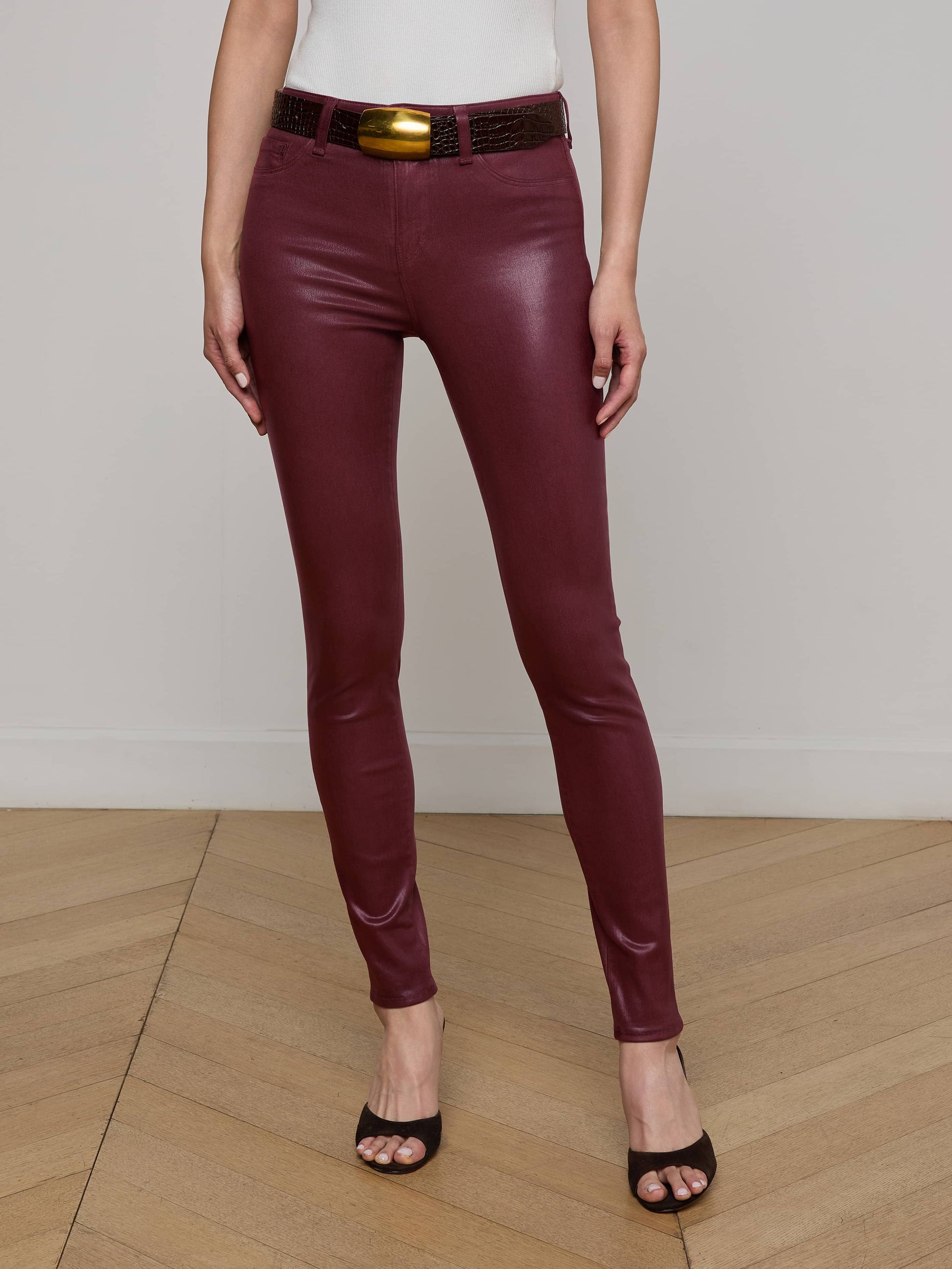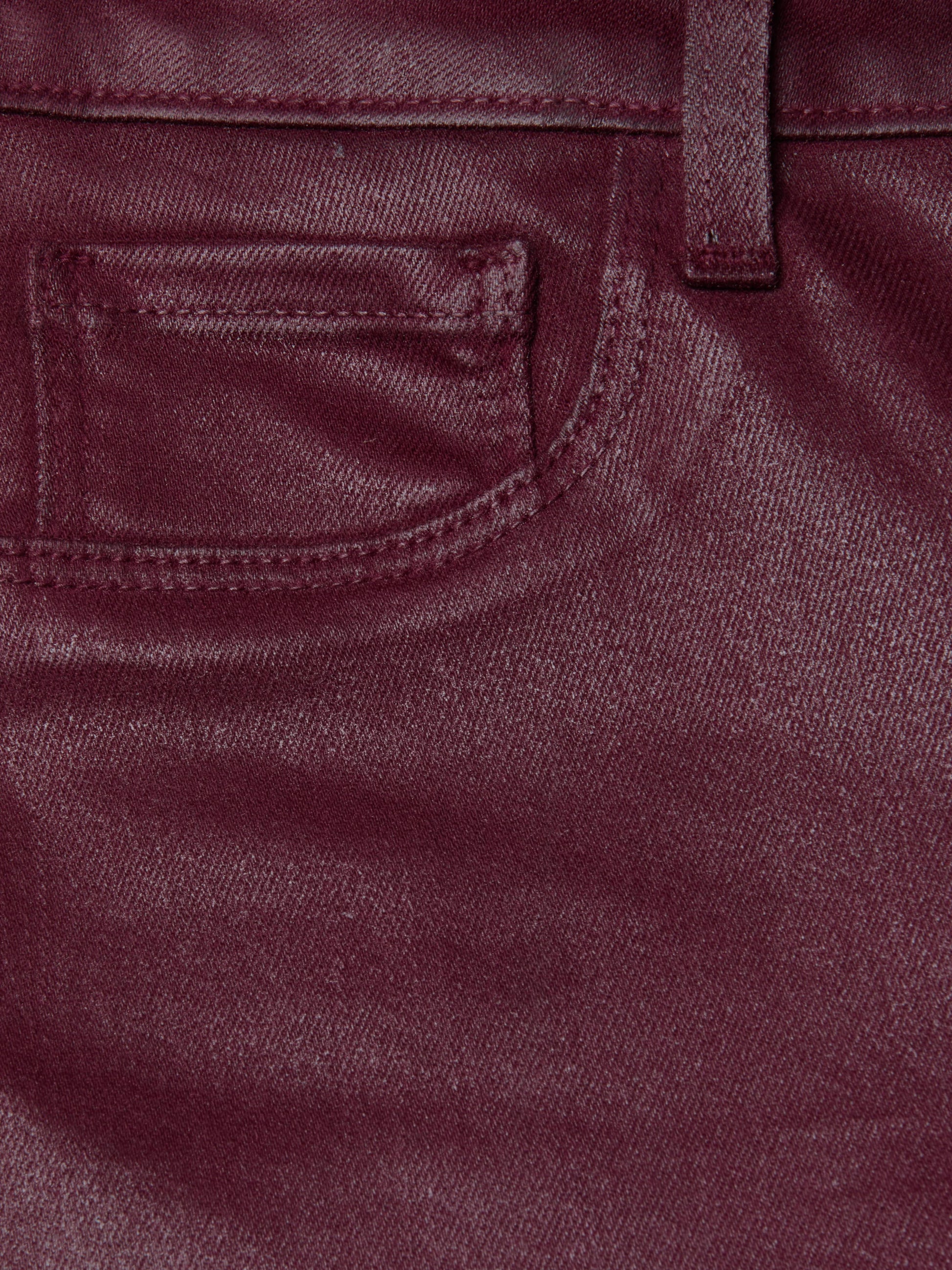 Our iconic skinny jean and all-time bestseller. The Marguerite in our leather alternative coated denim is a night out essential. Now in dark port.