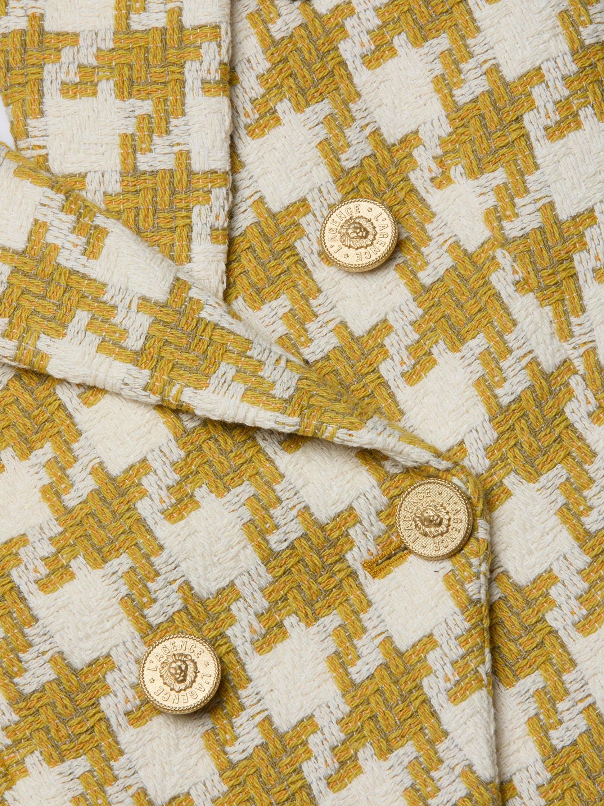 An ultra flattering double-breasted blazer featuring a defined, cinched waist. Now in a bold, oversized houndstooth pattern.