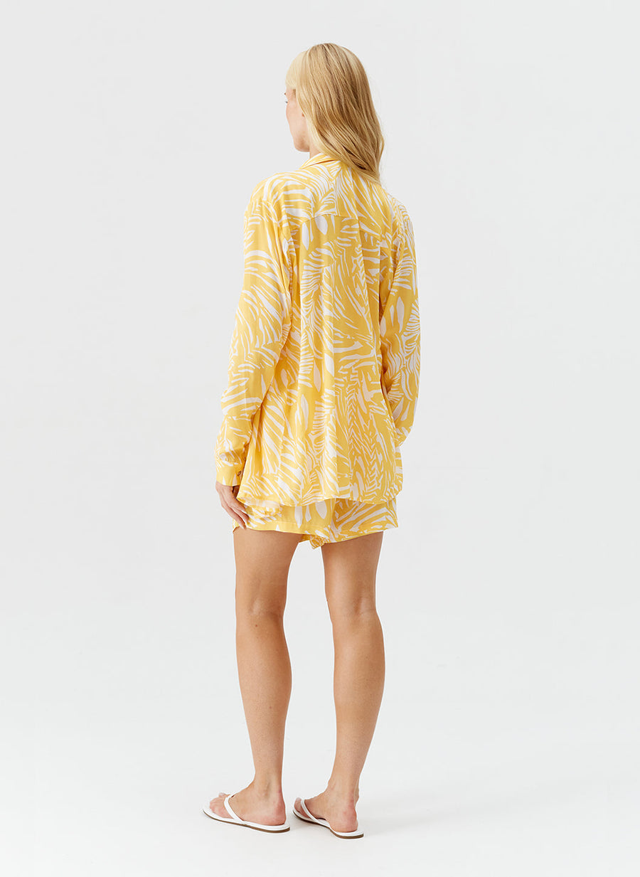 For a playful addition to your destination wardrobe, look no further than the Annie shorts. Emblazoned in our bold yellow and white Jungle print for Cruise 2025, this style is cut for a relaxed fit. Fusing comfort and style, they feature an elasticated waist with a drawstring, adorned with our signature gold branded cord-ends. Pair with the matching Millie Shirt to create a chic co-ord.