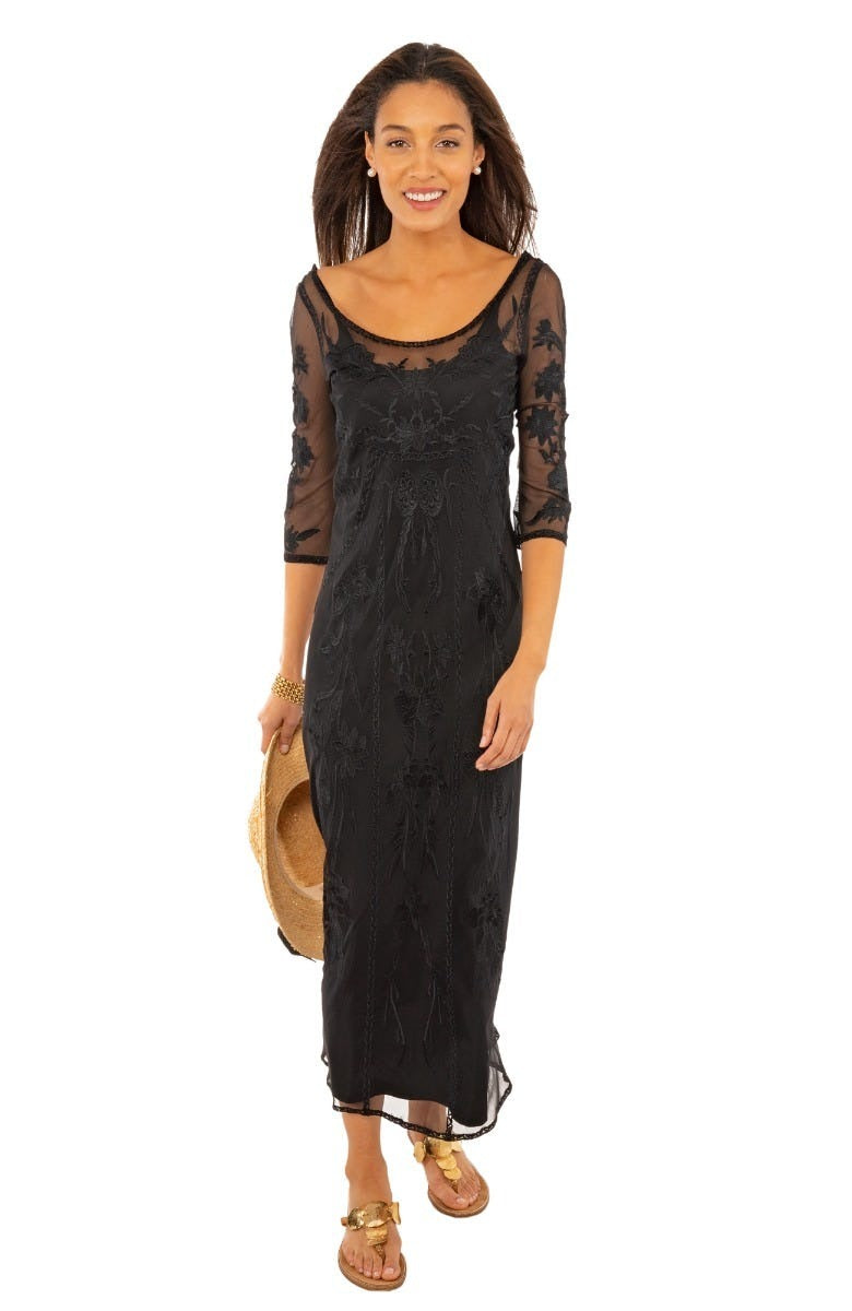 Mesh Embroidered Midi/Maxi Dress with Slip - Ikebana