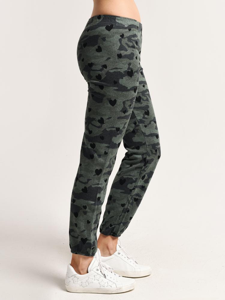 Monrow Elastic Waist Sweats with Hearts and Camo