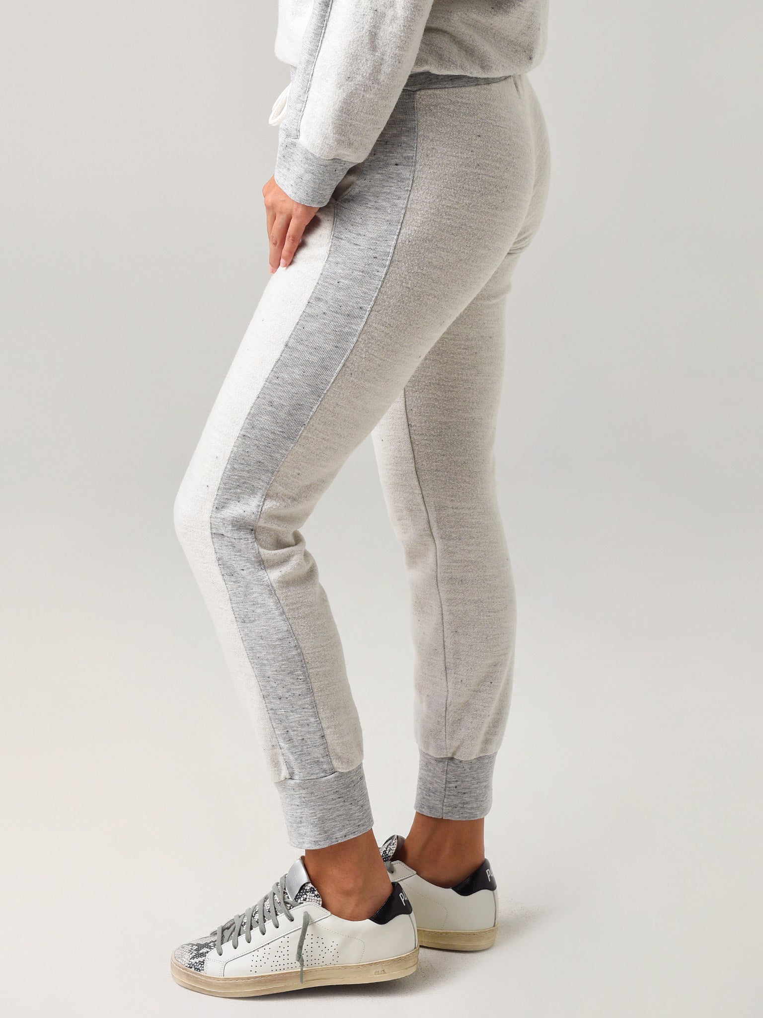 Monrow Women's Reversed Sporty Sweatpant With Contrast Rib Stripe