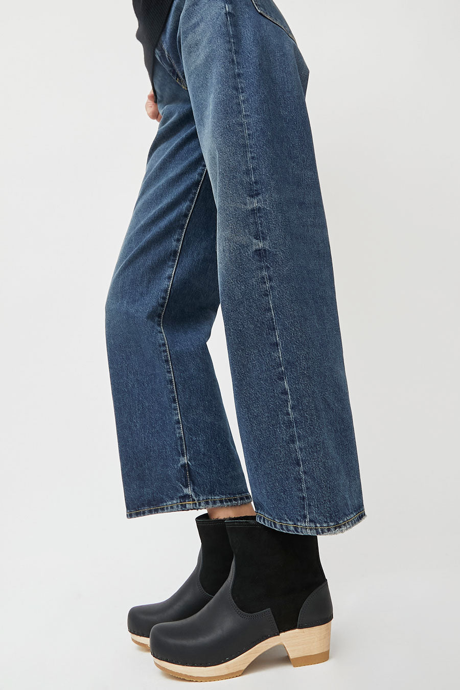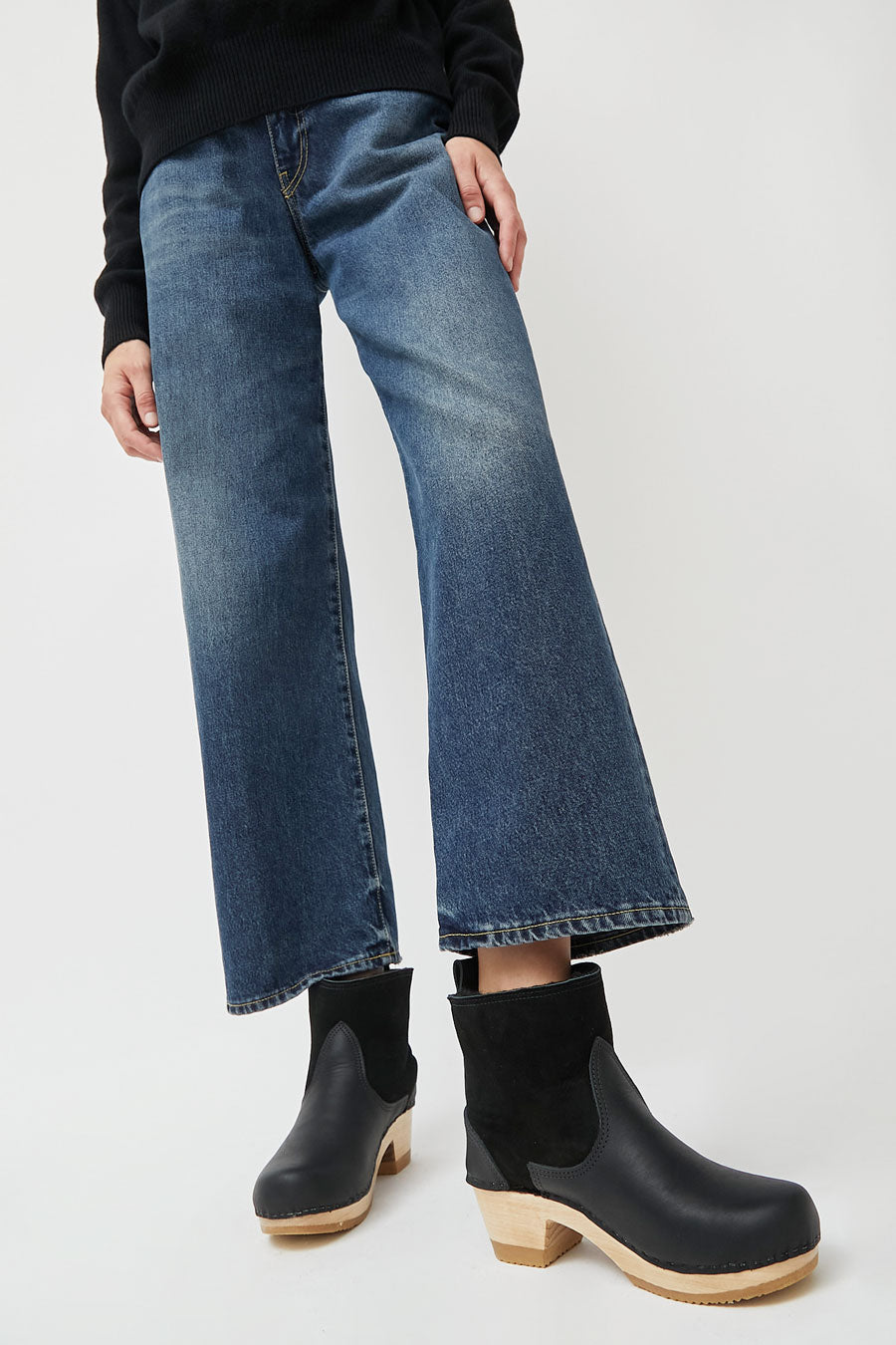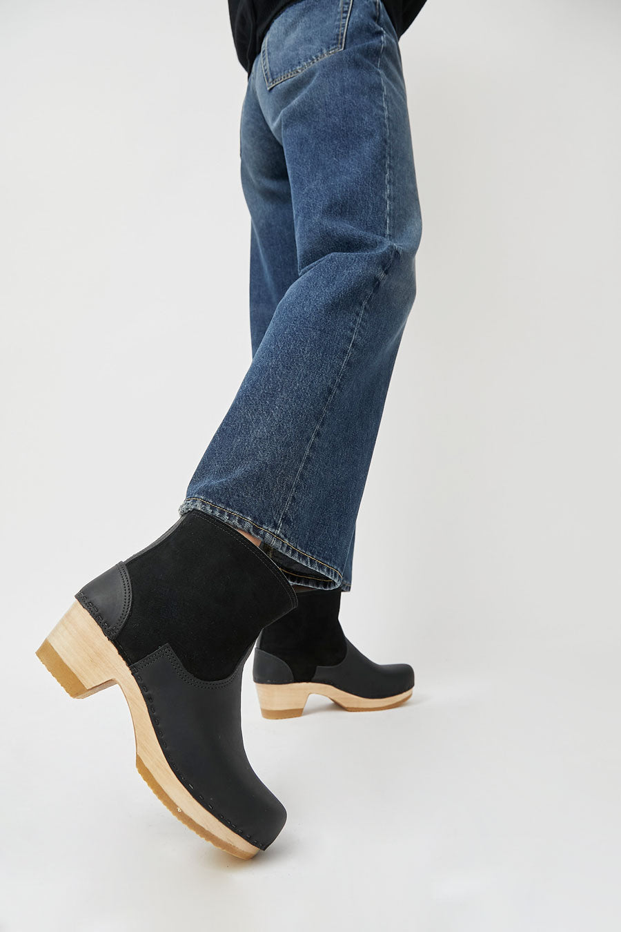 No.6 5" Pull on Shearling Clog Boot on Mid Heel in Black Suede