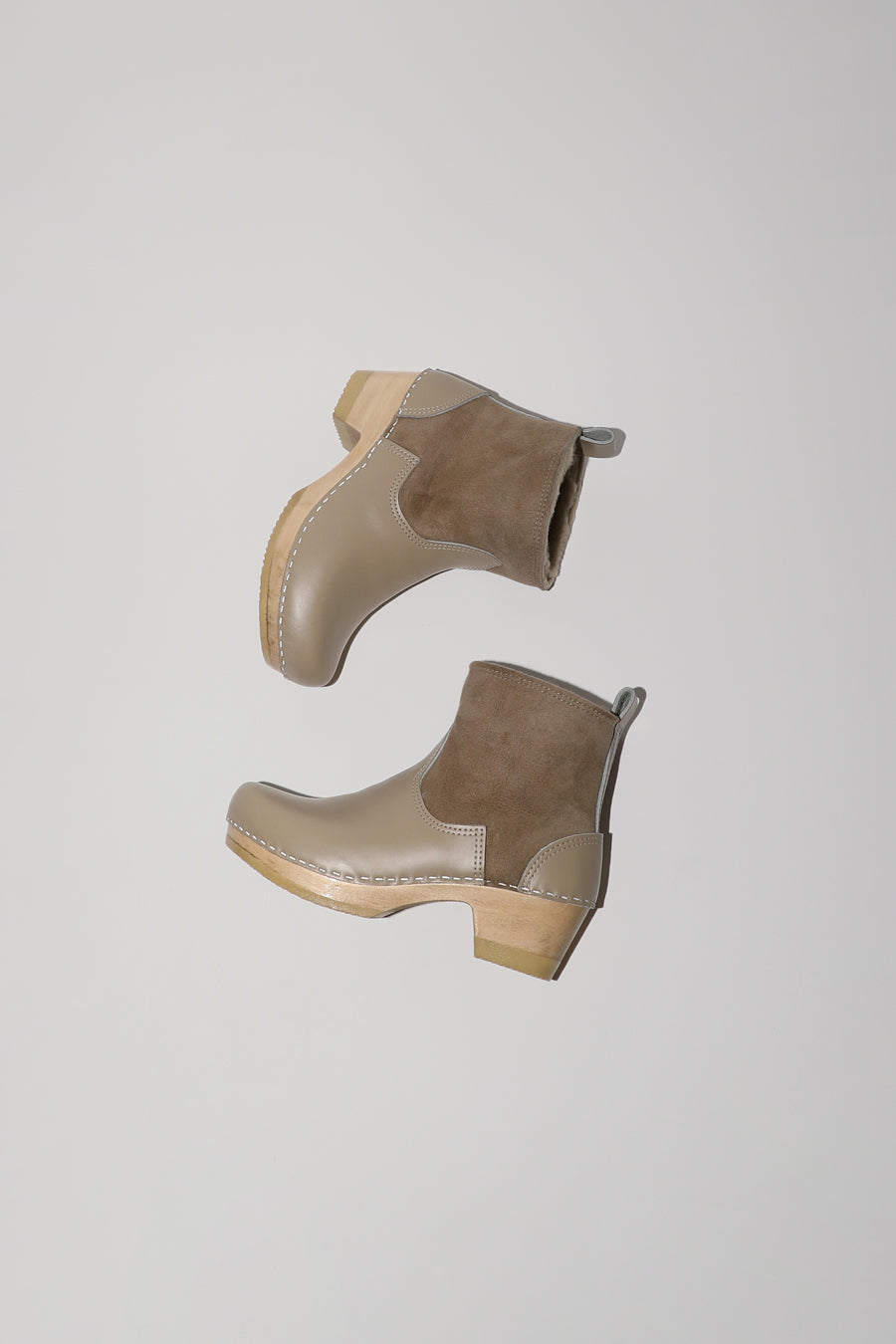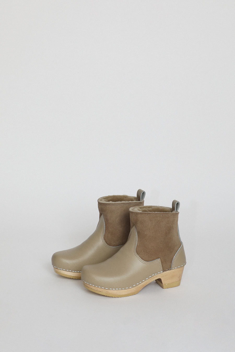 No.6 5" Pull on Shearling Clog Boot on Mid Heel in Clay