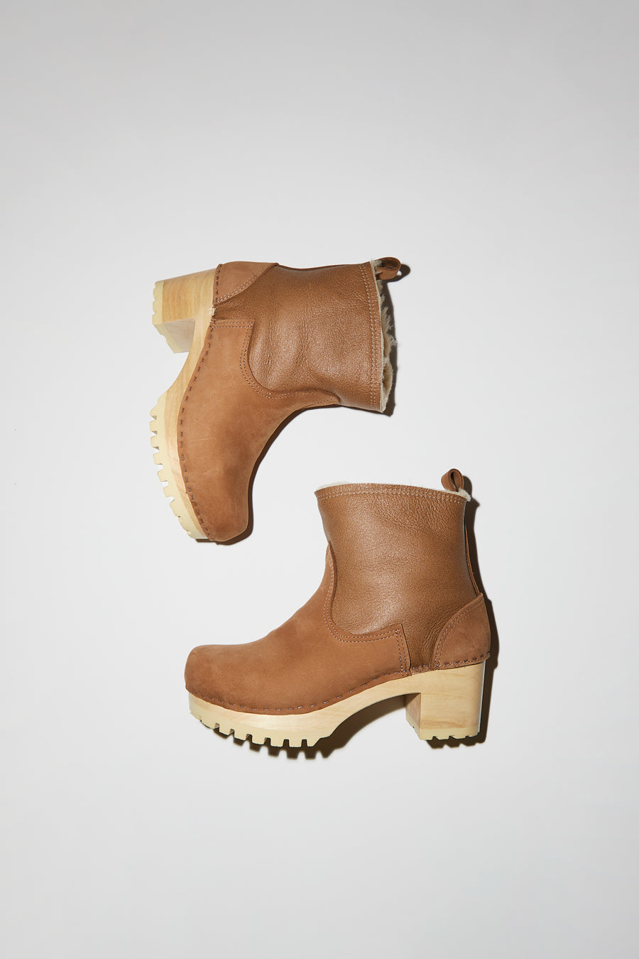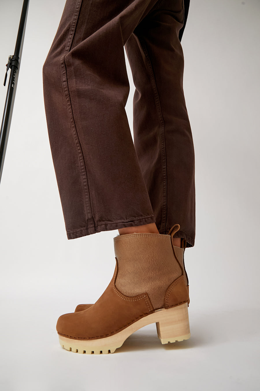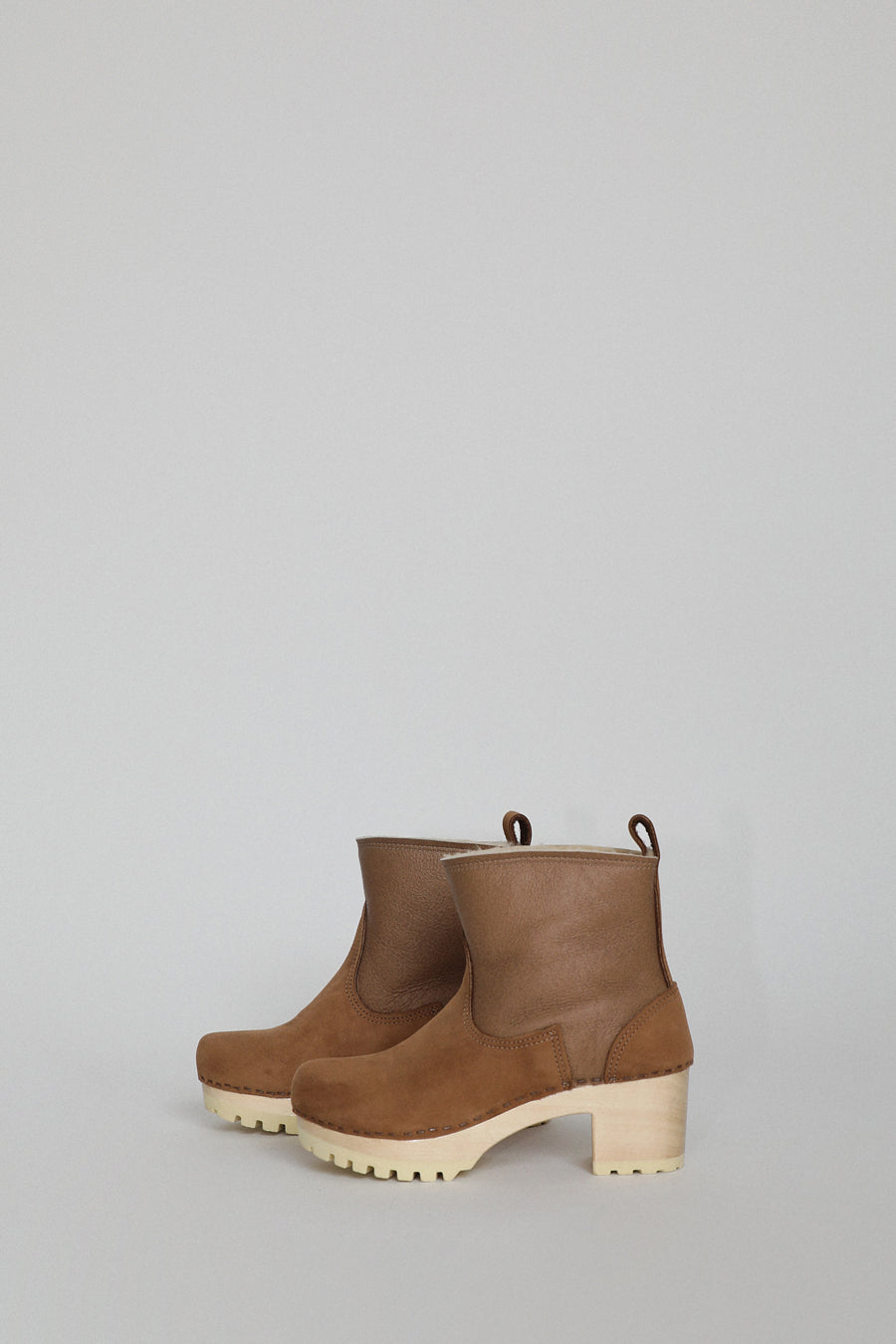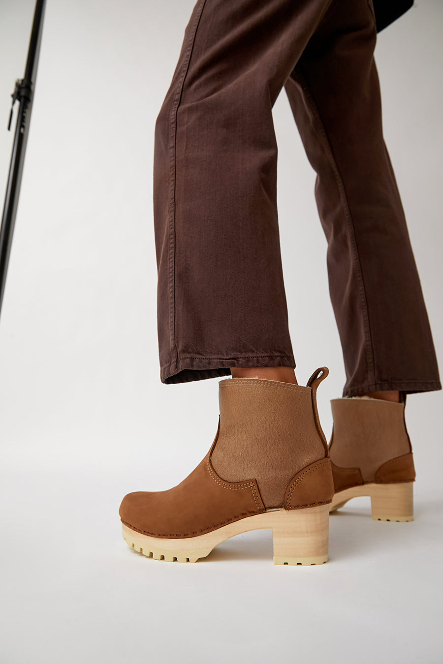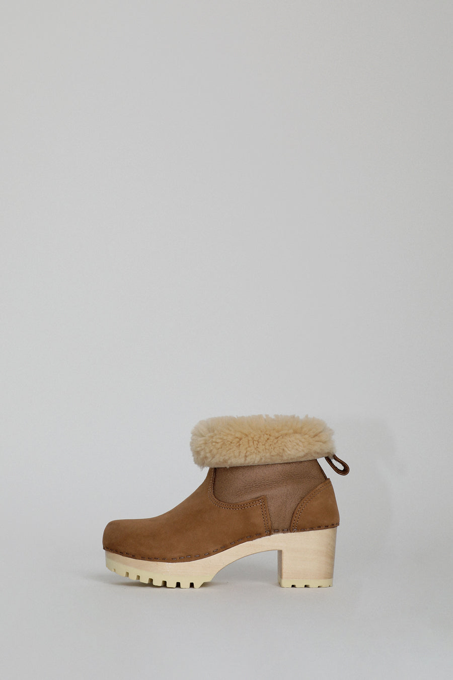 No.6 5" Pull On Shearling Clog Boot on Mid Tread in Honey Aviator on White Base