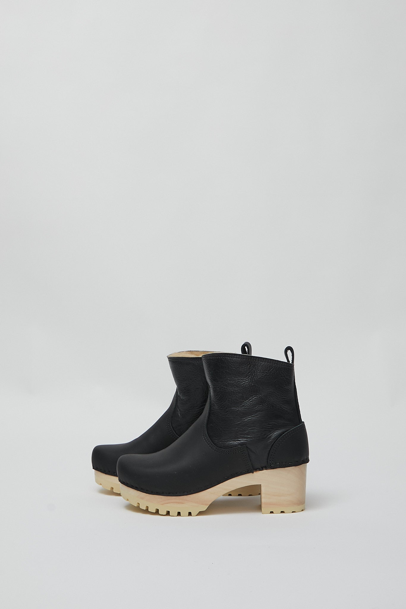 No.6 5" Pull on Shearling Clog Boot on Mid Tread in Ink Aviator on White Base