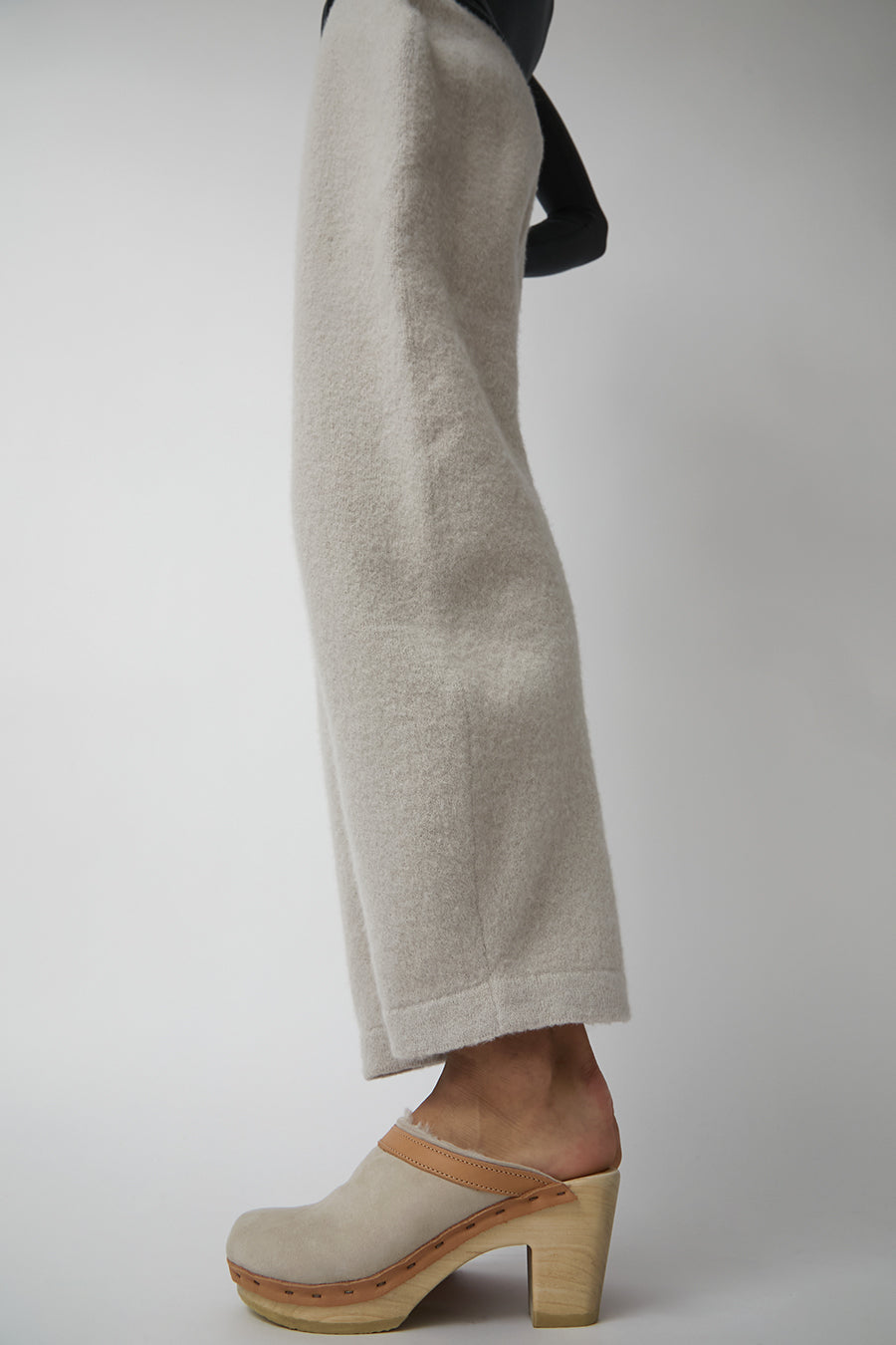A neutral shoe for everyday, with an edge -- literally! Perfect for when the weather starts to get cold. We love this for indoors and outdoors. Surprisingly comfortable for a high heeled shoe. This iteration of the Dakota features our best-selling bone suede accented with contrasing desert leather along the base and clog opening.