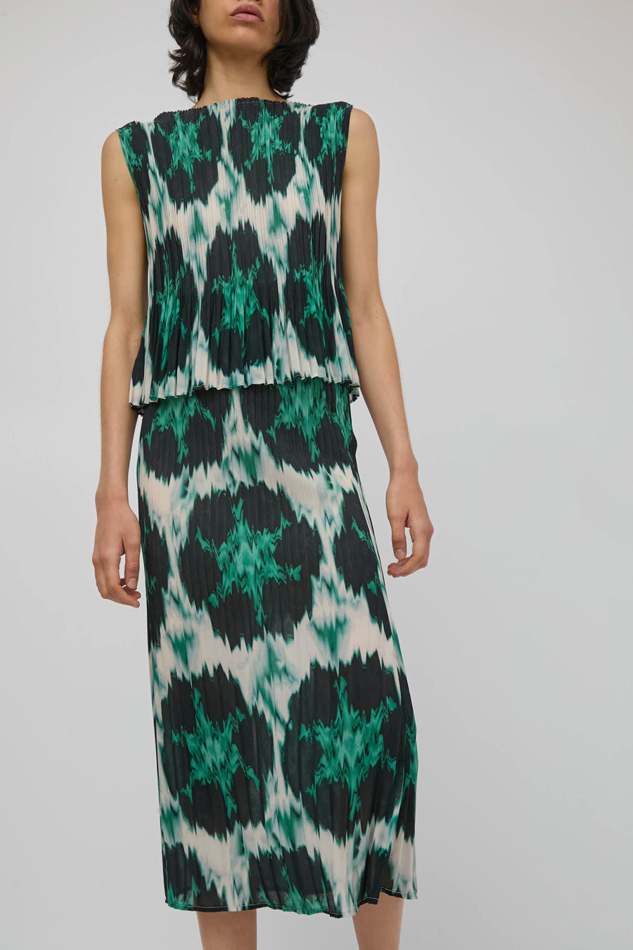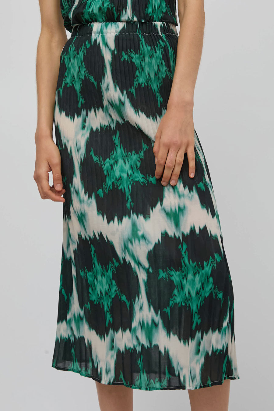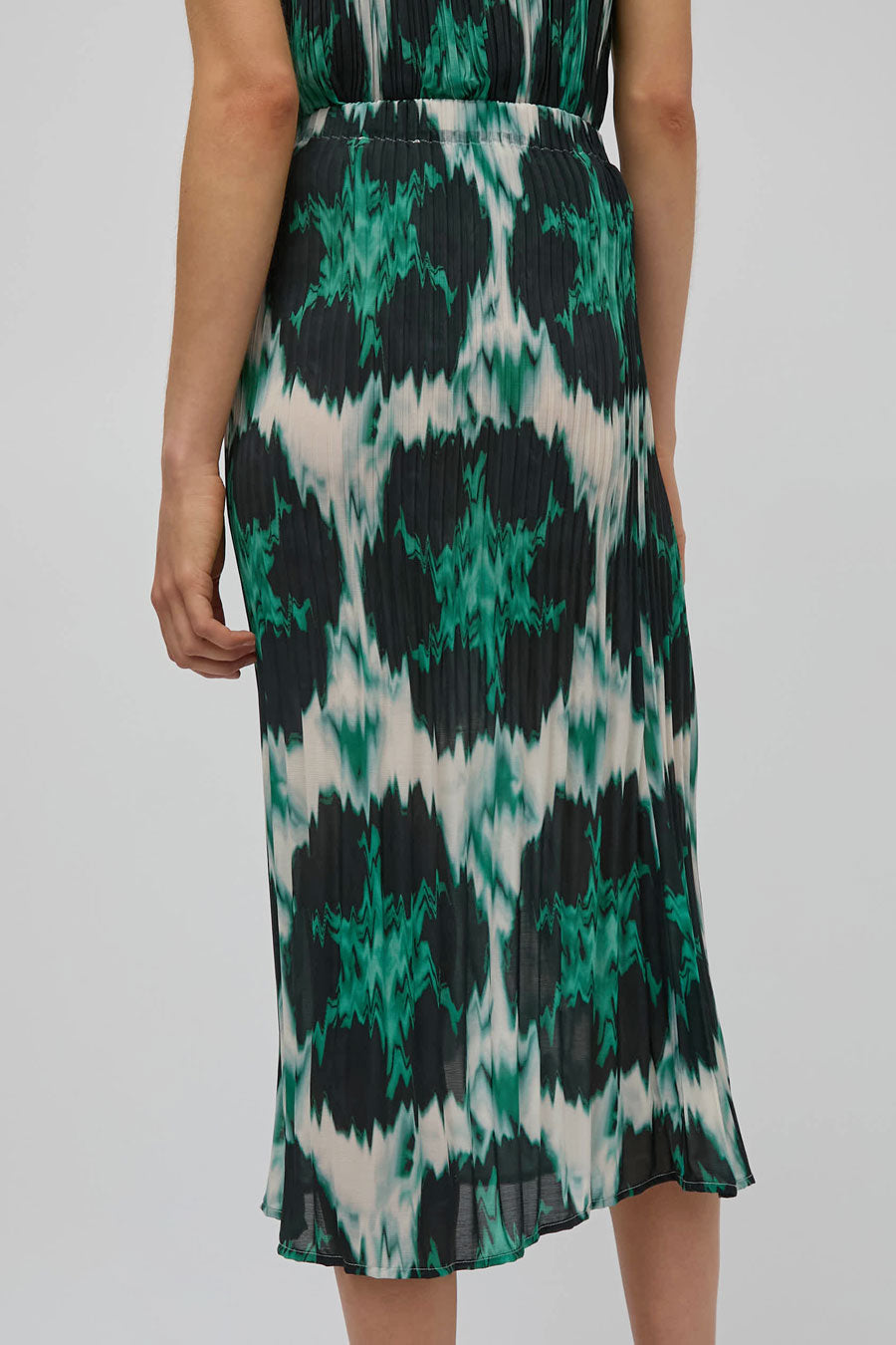 Easy to wear mid-length skirt in a bold abstract floral print. Pleated fabric with comfortable elasticated waistband. For the full look, wear with the No.6 Rae Tank in Emerald Ikat.