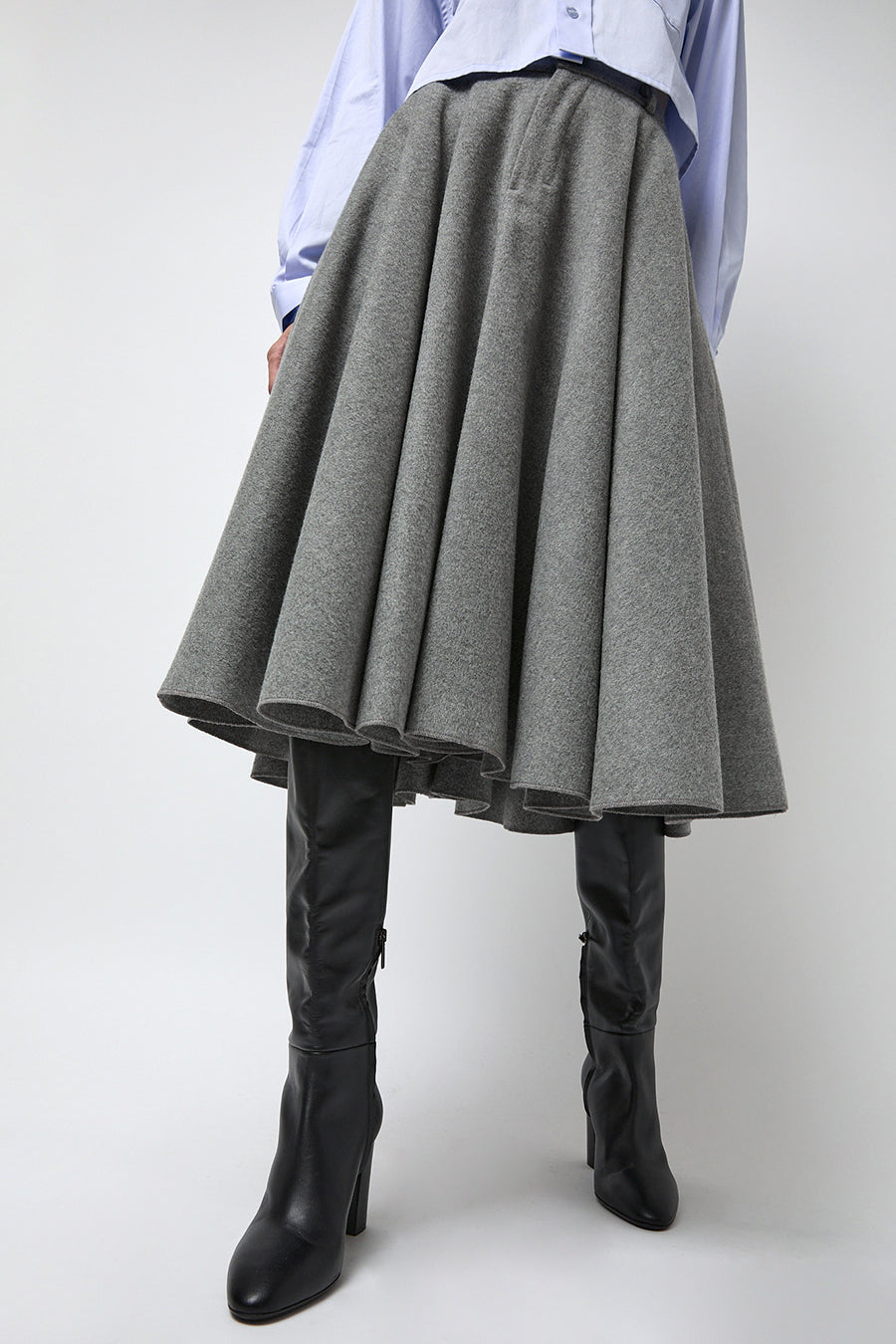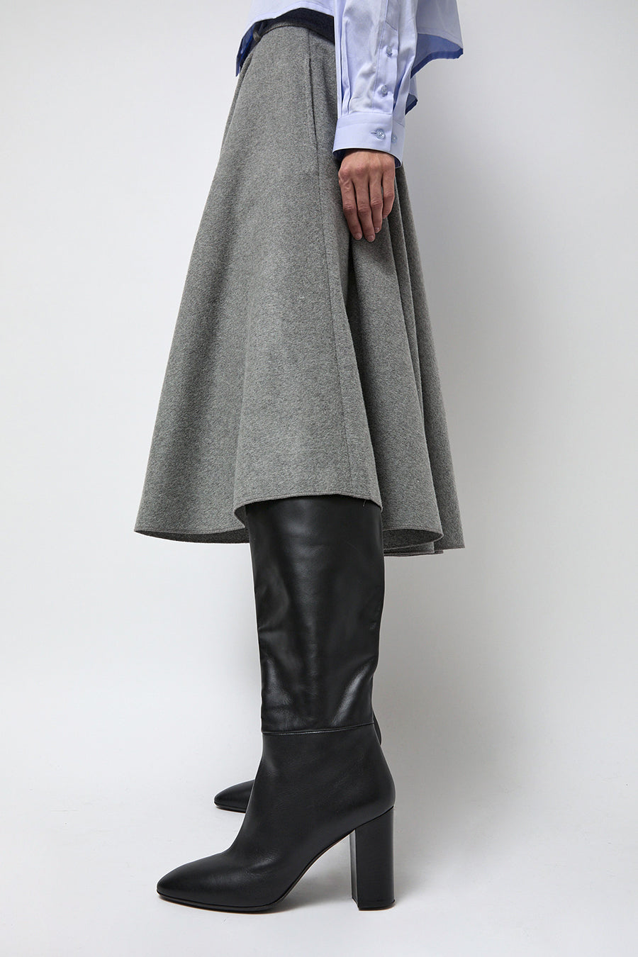 New from No.6. Knee high leather boot with substantial block heel. Rounded toe. Buttery soft leather. Interior zip for easy on and off. A timeless, goes-with-everything boot to complete your cold weather looks.