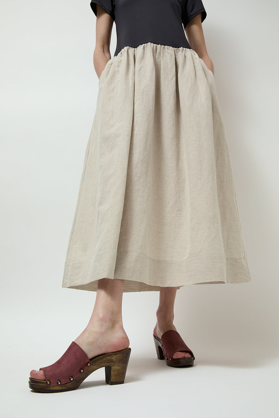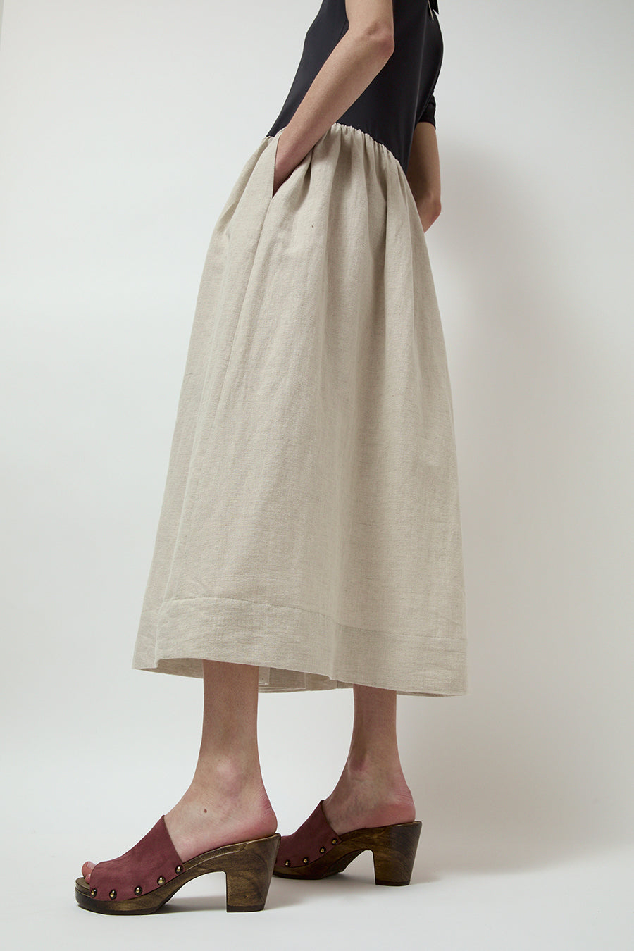 New this season. Open toe mule with stud detailing on stained high heel base. Dusty rose leather upper. Lacquered, lightweight wood base. Unlined. Surprisingly comfortable for a high heeled shoe.