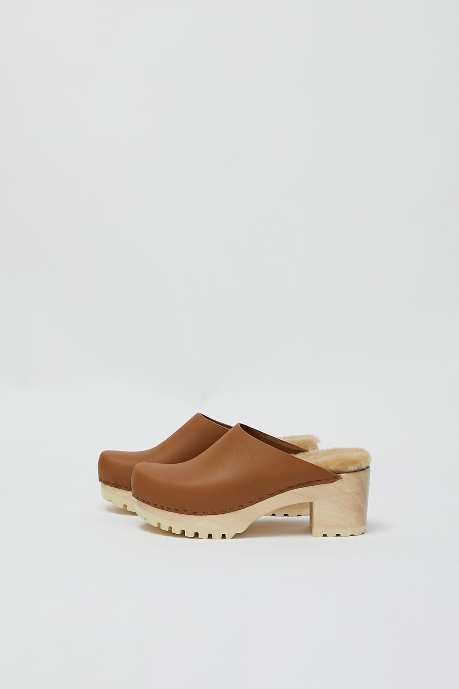 No.6 Liza Clog on Mid Tread in Palomino with Ink Aviator Shearling