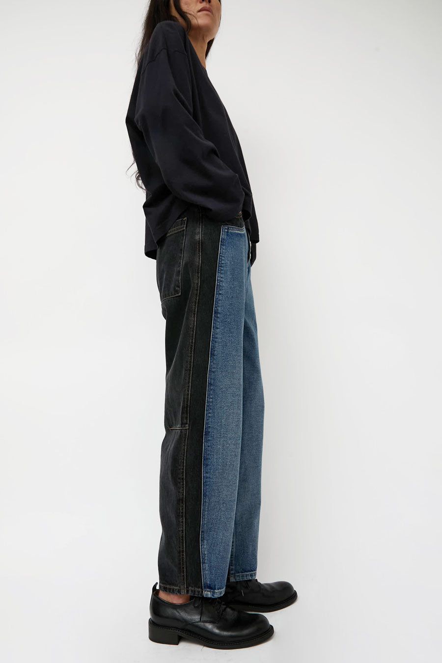 The No.6 Mason is a perfectly tailored relaxed leg jean with subtle yet impactful cowgirl carpenter touches. Slightly curved pant leg with side seam detail and contrasting front panel. Back patch pockets. Exposed button fly. An instant classic.