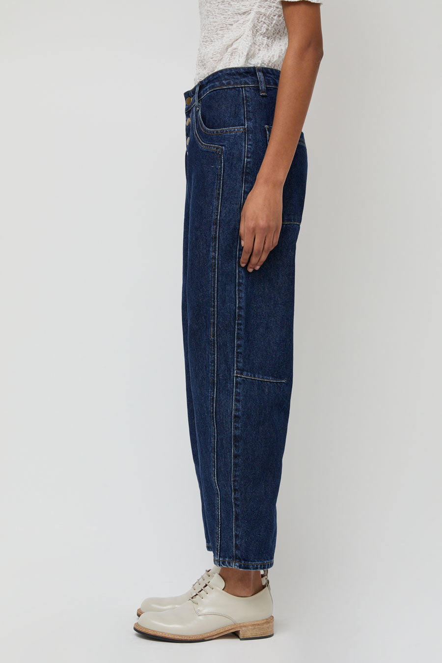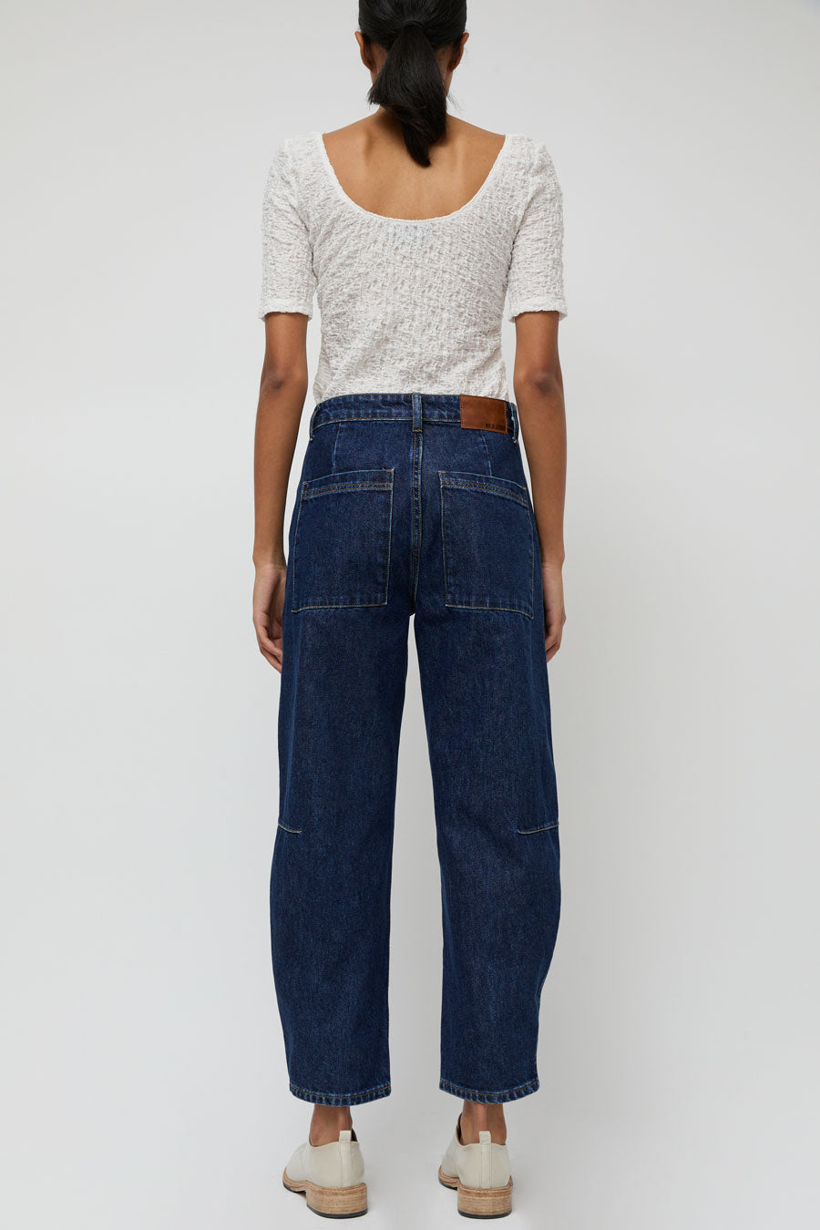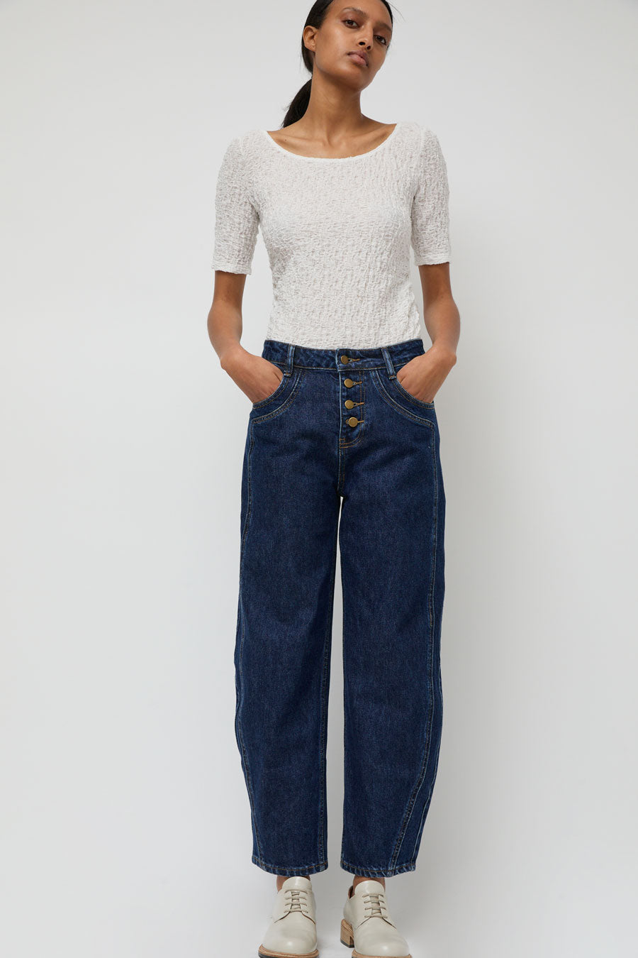The No.6 Mason is a perfectly tailored relaxed leg jean with subtle yet impactful cowgirl carpenter touches. Slighty curved pant leg with side seam detail. Back patch pockets. Exposed button fly. An instant classic.
