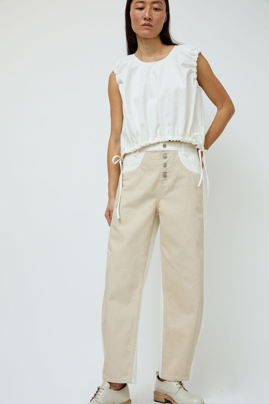 The No.6 Mason is a perfectly tailored relaxed leg jean with subtle yet impactful cowgirl carpenter touches. Slightly curved pant leg with side seam detail and contrasting front panel. Back patch pockets. Exposed button fly. An instant classic.