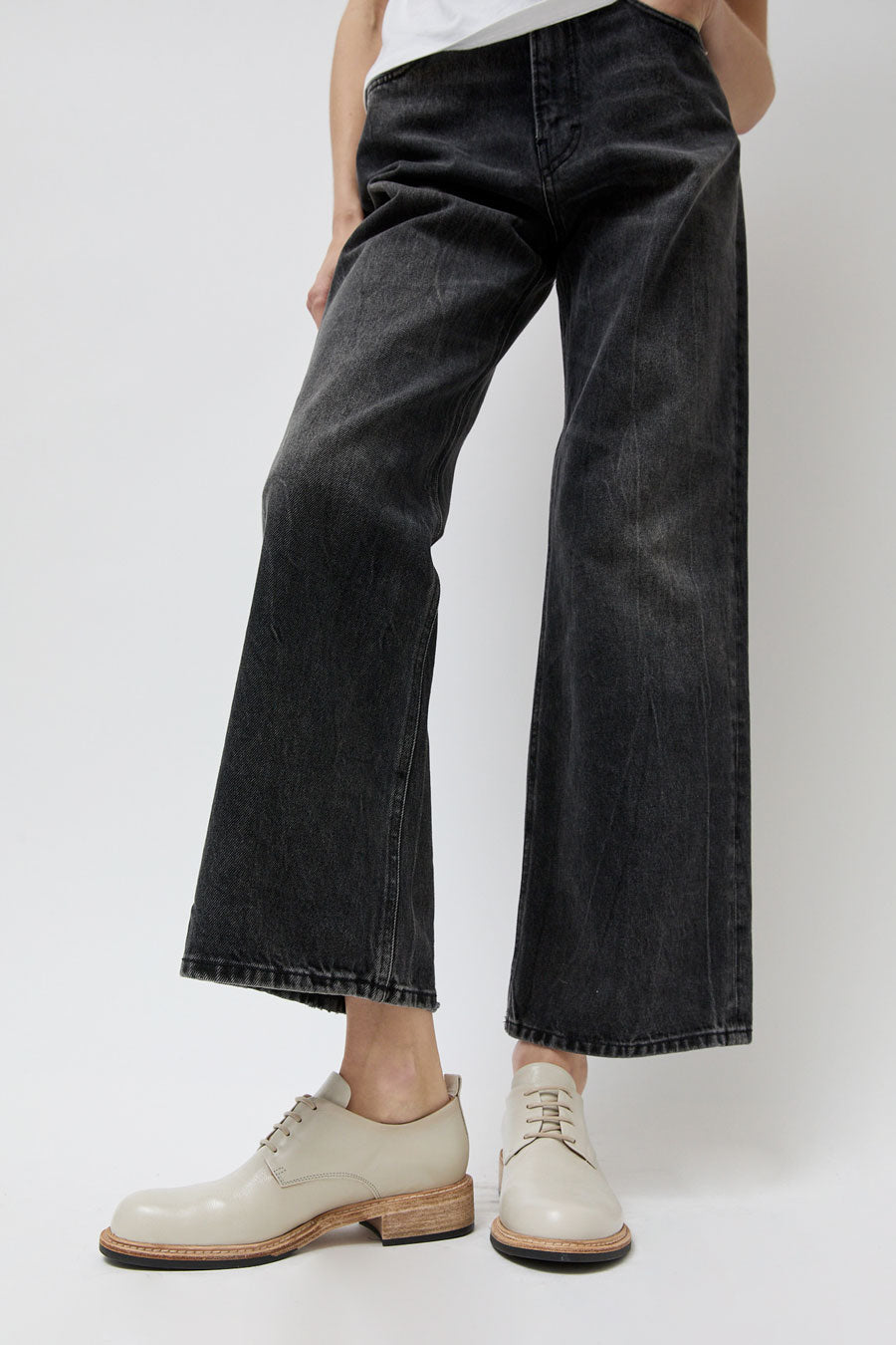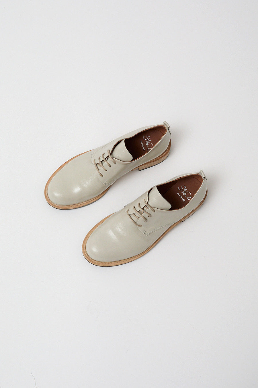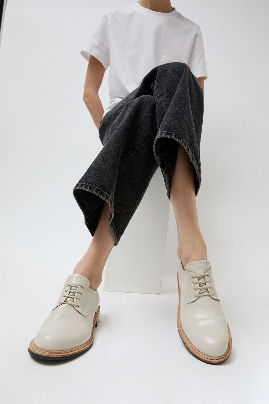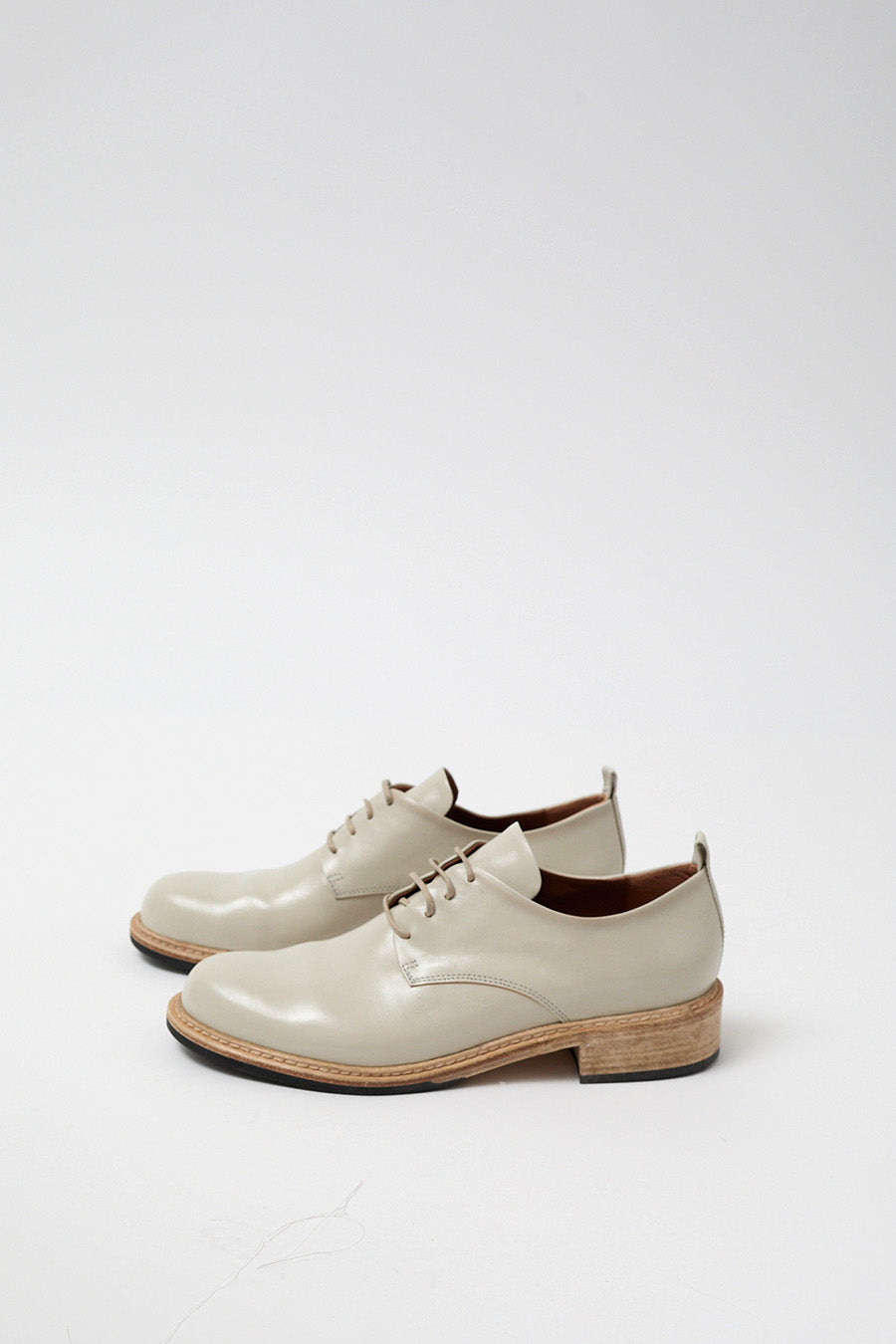 Classic lace-up Oxford in smooth ecru leather. Stacked heel for extra comfort. Perfect for everyday wear.