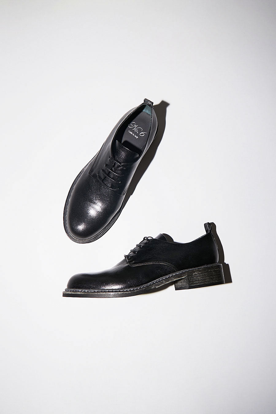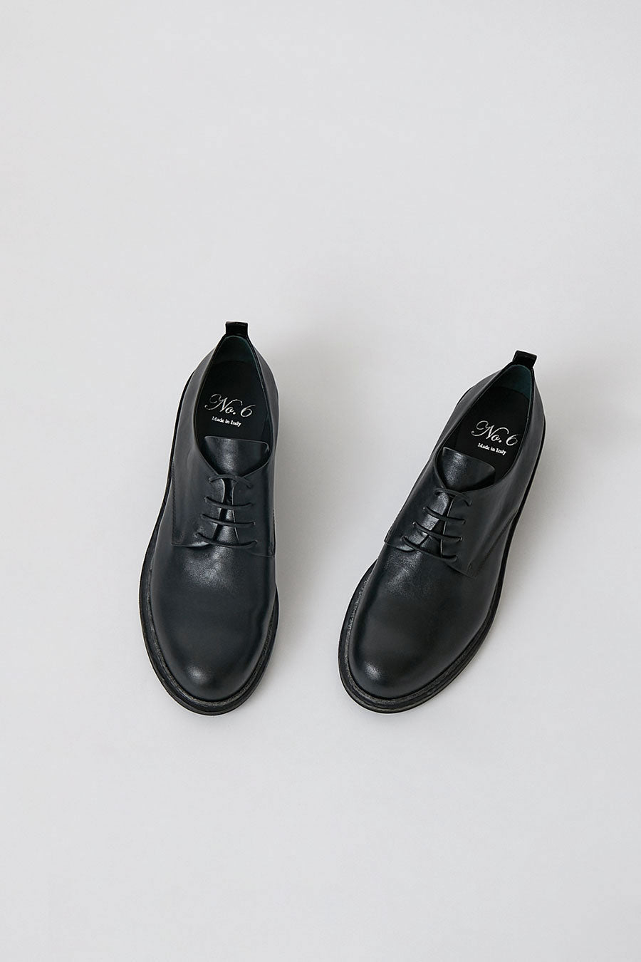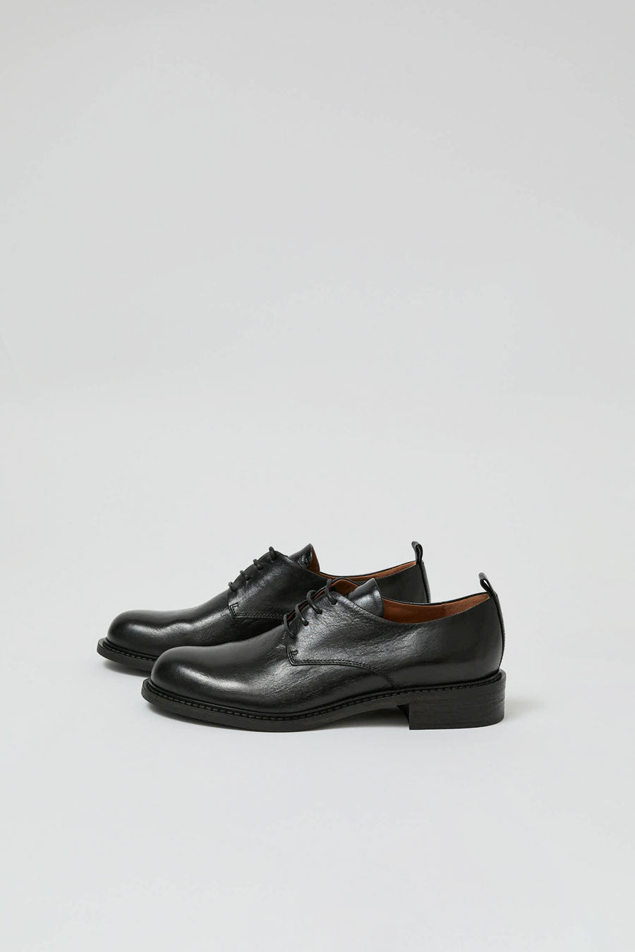 Classic lace-up Oxford in smooth black leather. Stacked heel for extra comfort. Perfect for everyday wear.