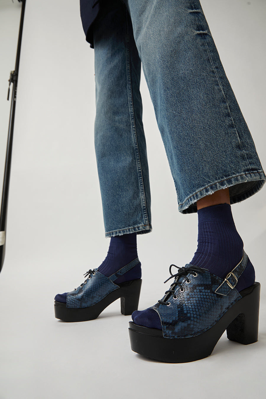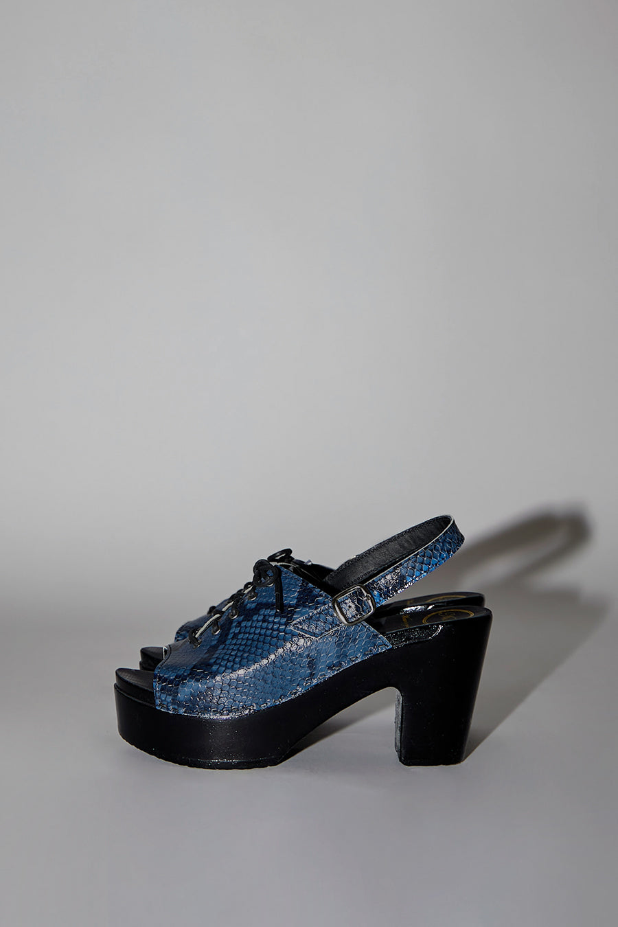 No.6 Simone Clog on Platform in Blue Snake on Black Base
