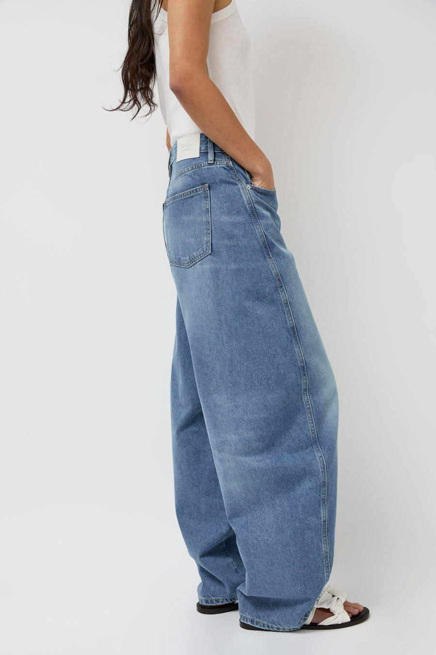 Mid-rise jeans in the perfect light wash cut in 100% organic cotton denim. Super relaxed fit with wide balloon leg. Classic 5-pocket construction.