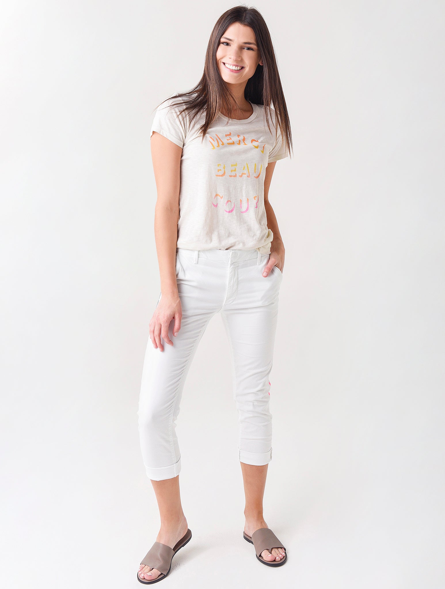 The Sundry Women's Stripe Rollup Trouser delivers a subtle pop of color to your spring look.