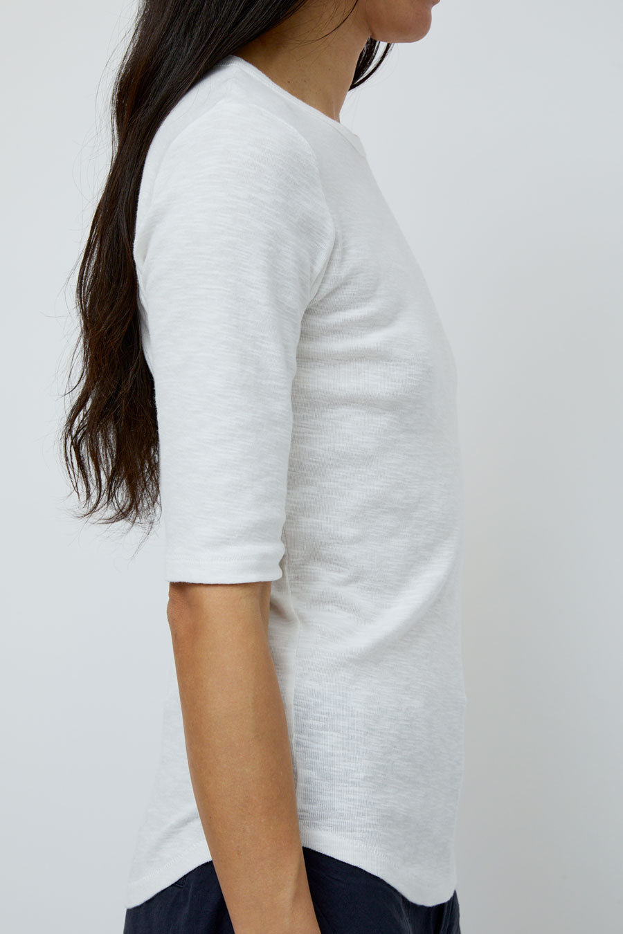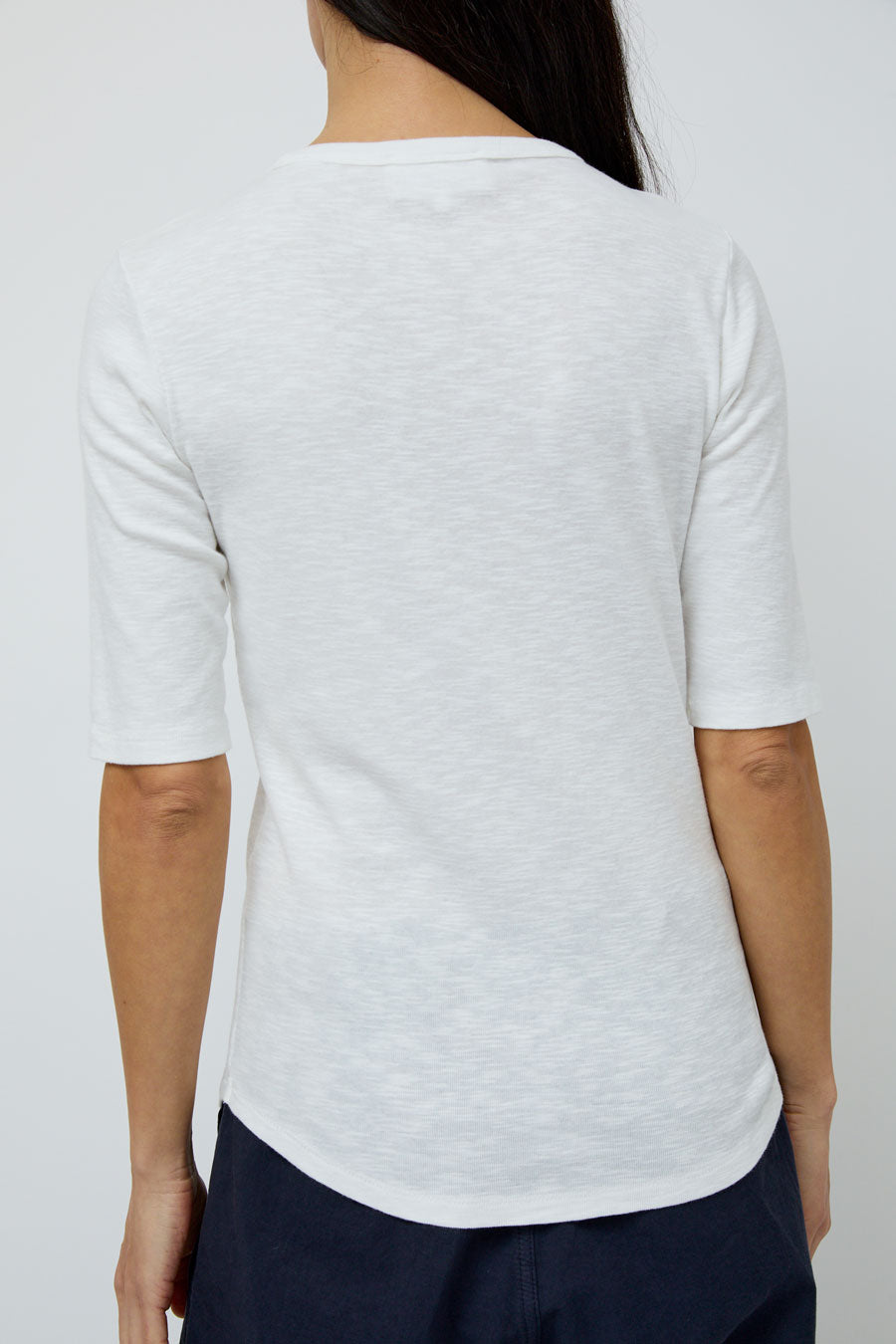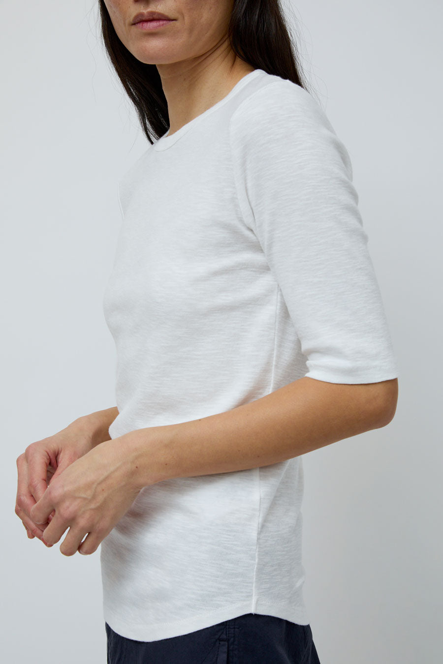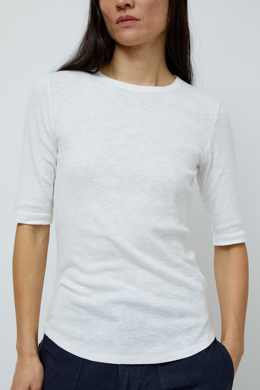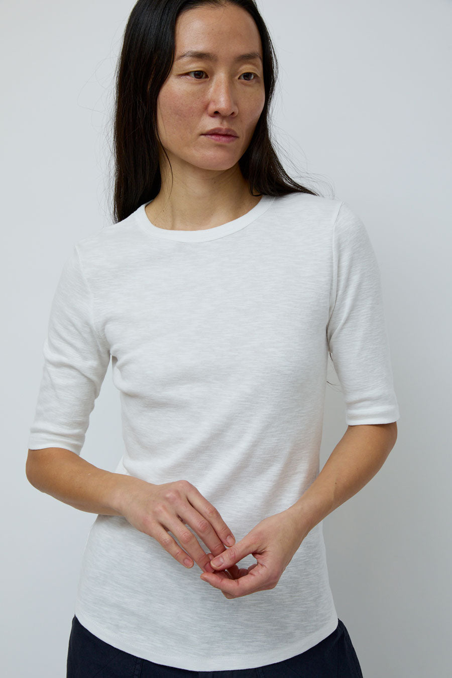 Crew neck top in 100% organic cotton. Half sleeve and slightly curved hem long enough to tuck. Perfect for everyday wear.