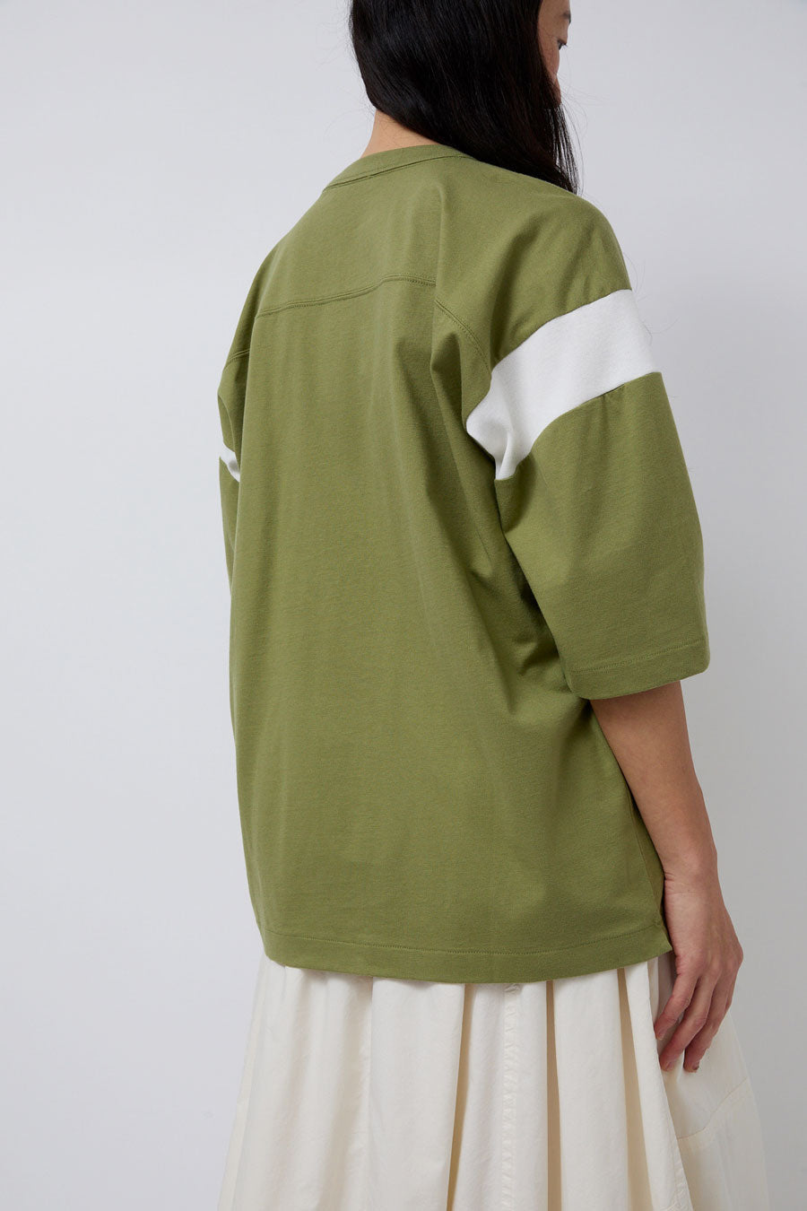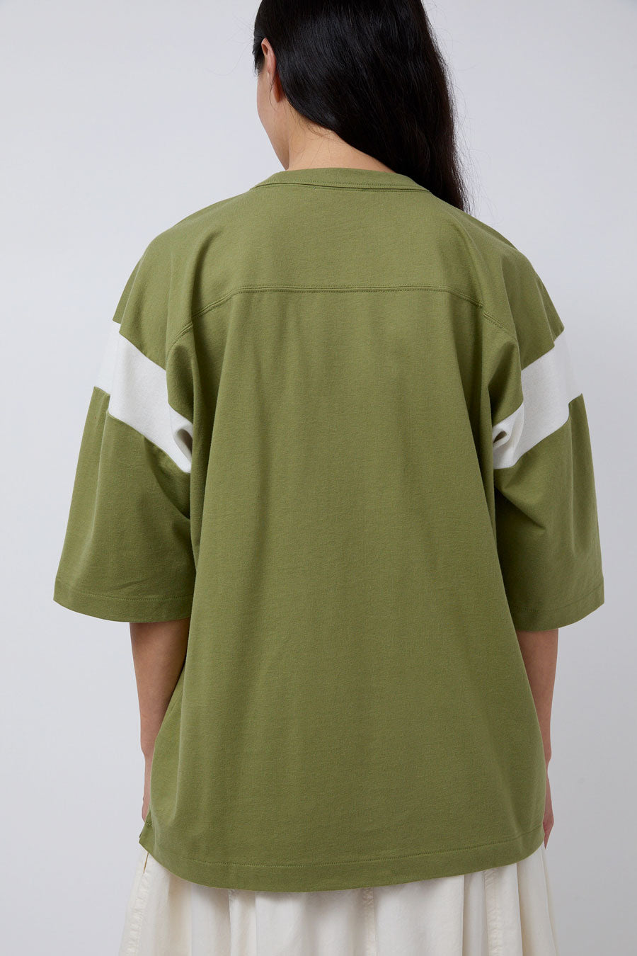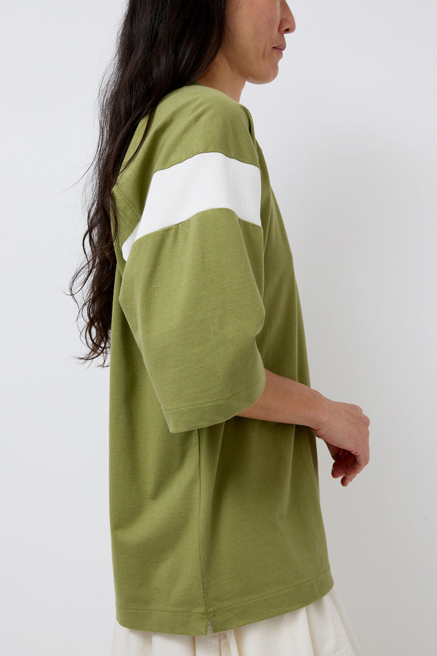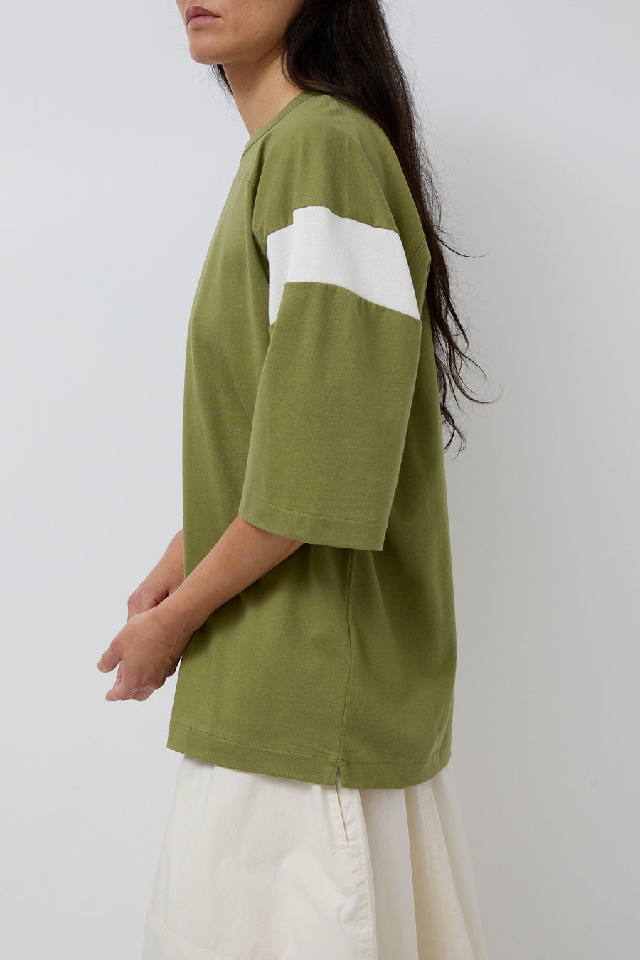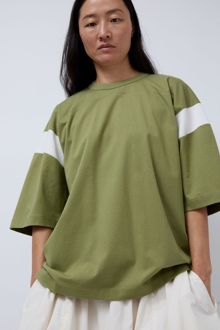 Short-sleeved t-shirt with stripe detail on the sleeve. Crew neckline. Oversized fit with a slightly cropped, boxy feel. Made from cotton with a bit of stretch.